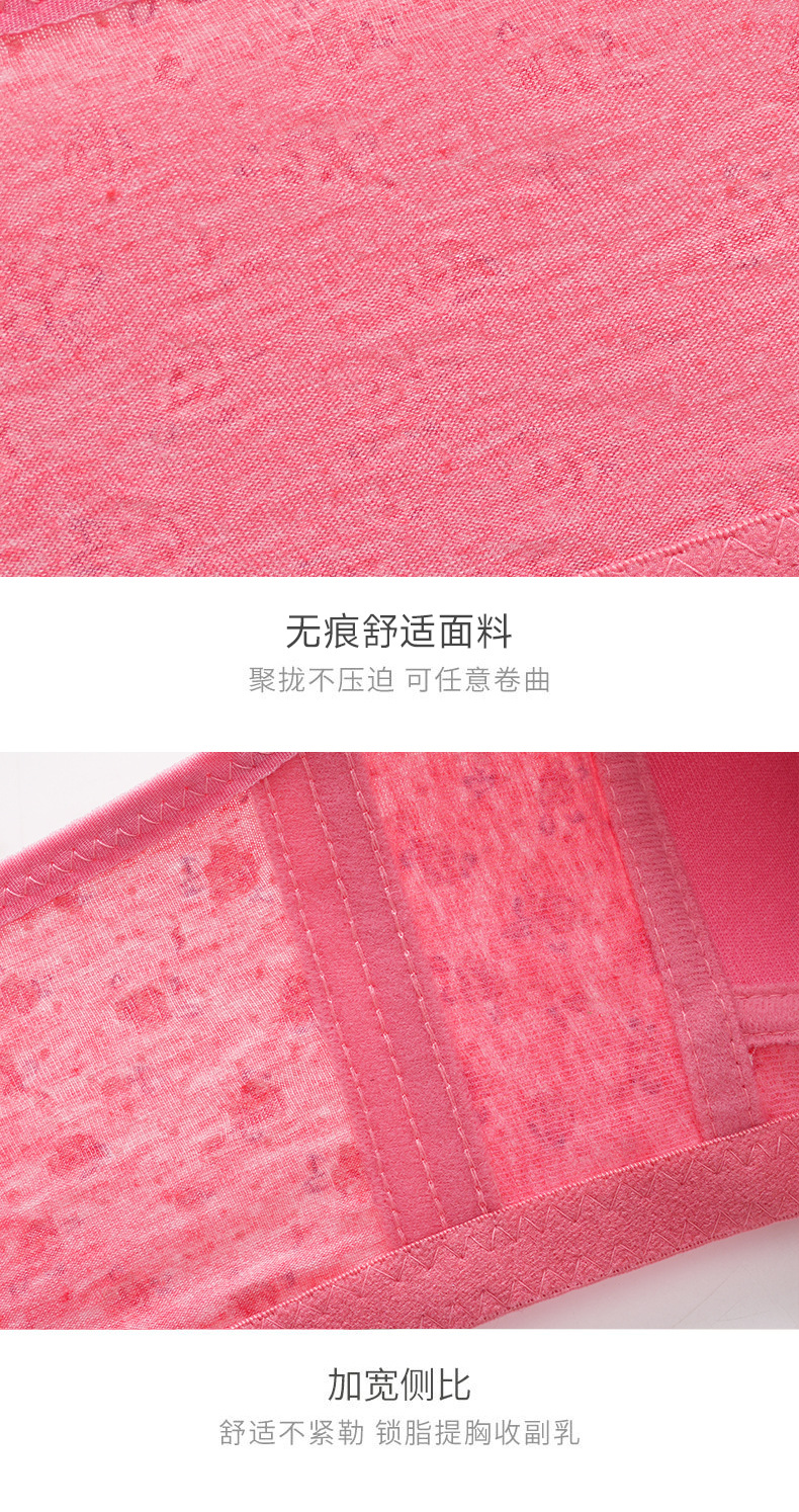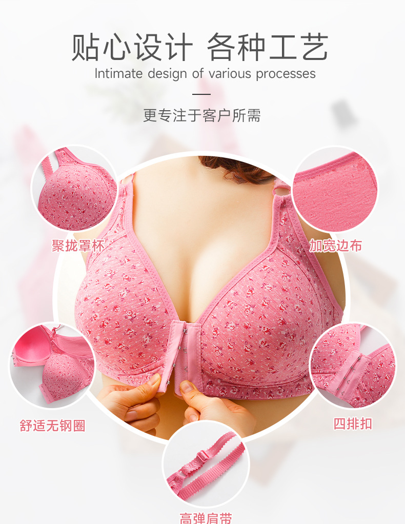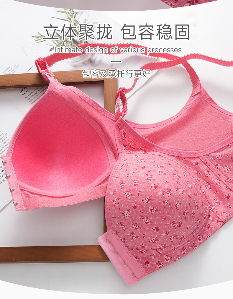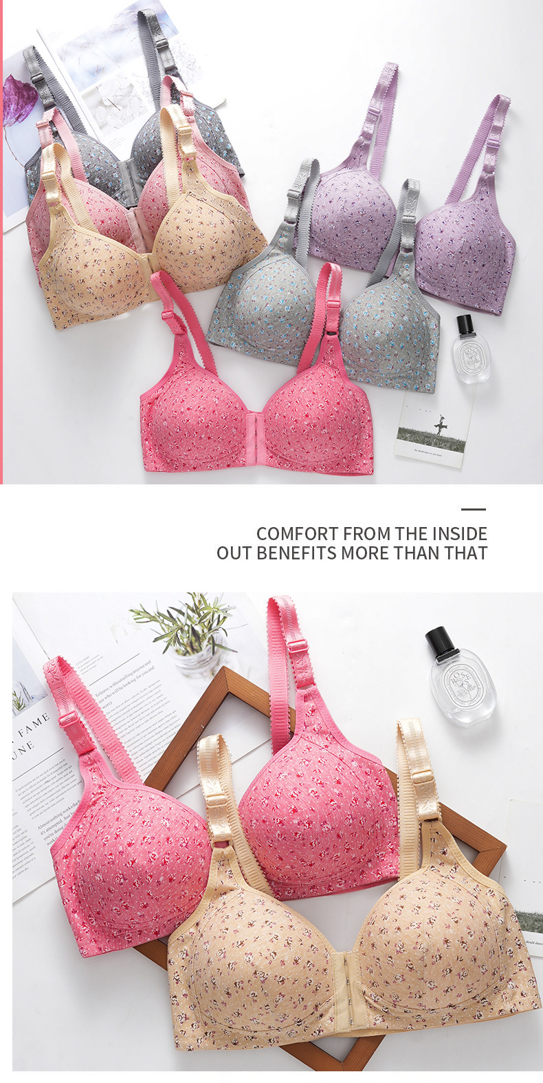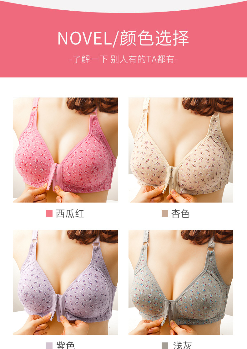 跨境大码印花薄款无钢圈前扣式文胸聚拢防下垂收副乳女式胖妈妈内