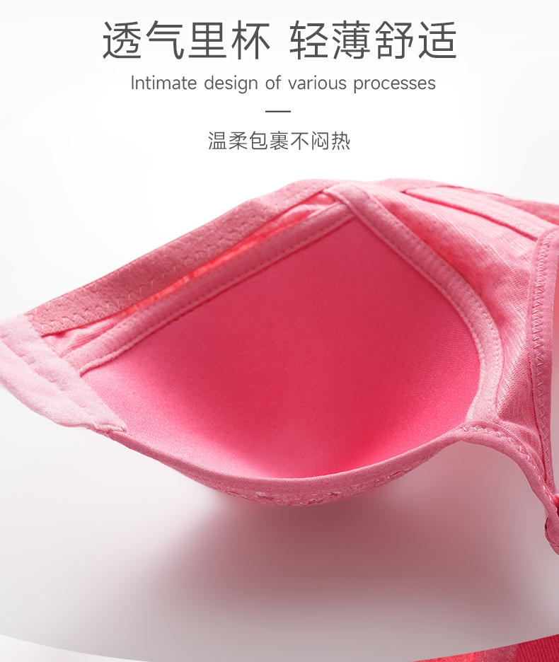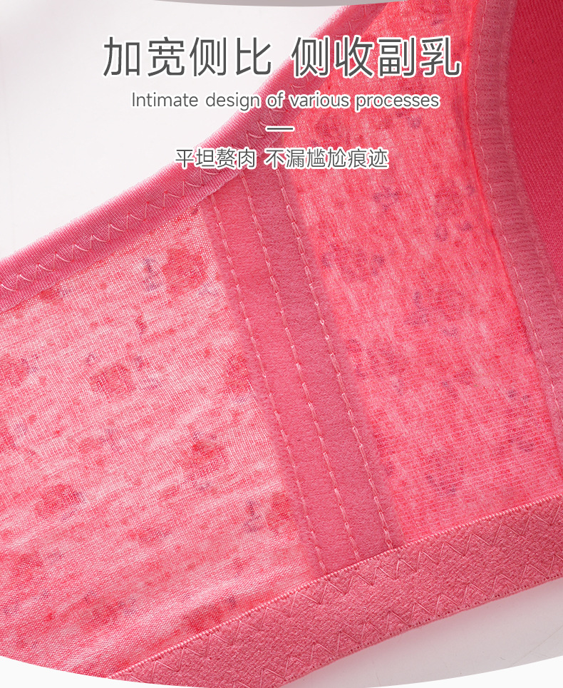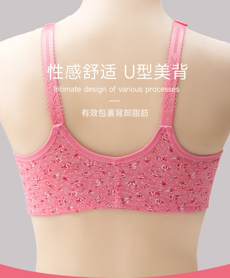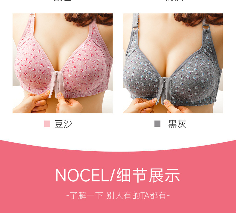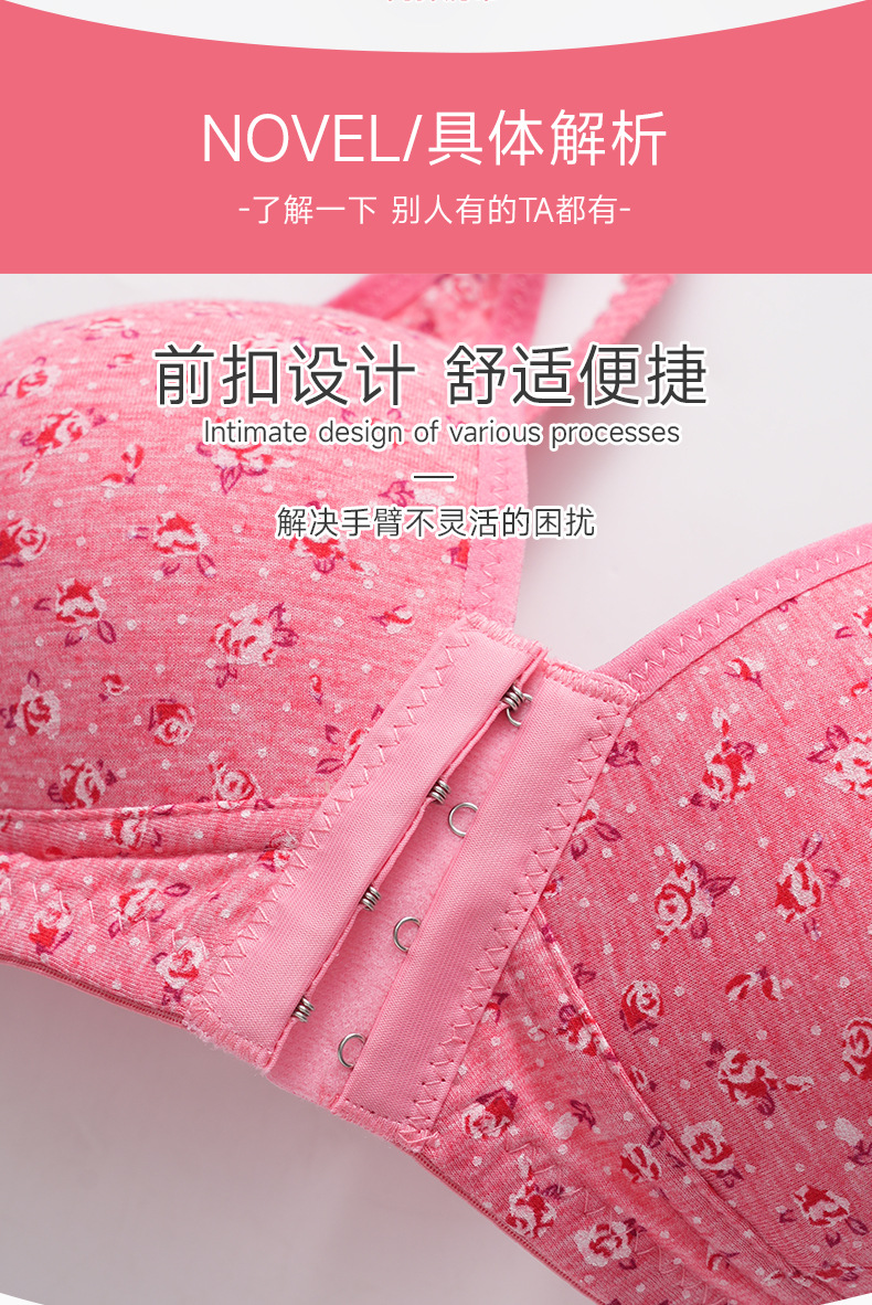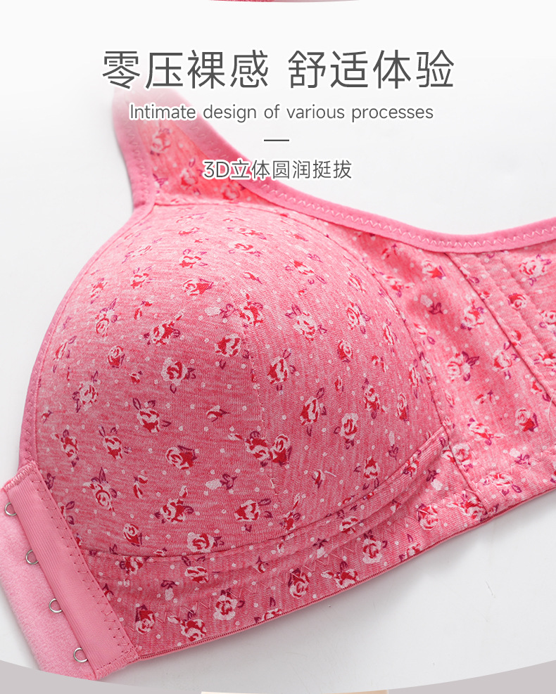 跨境大码印花薄款无钢圈前扣式文胸聚拢防下垂收副乳女式胖妈妈内