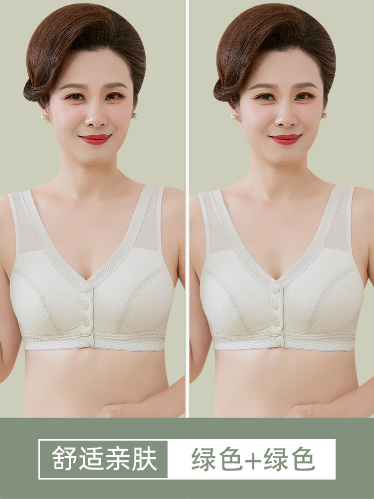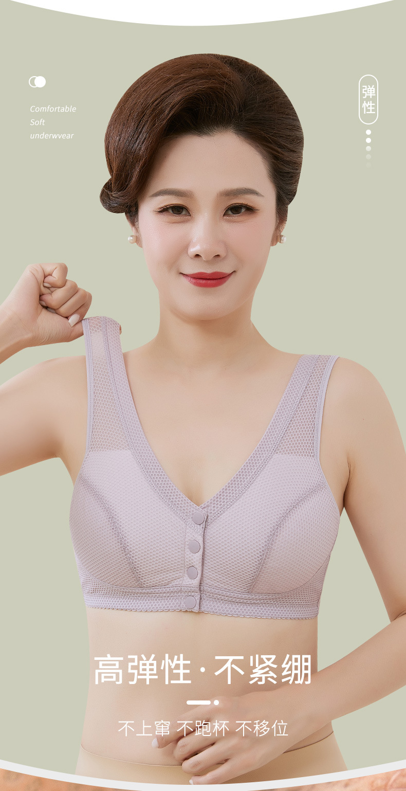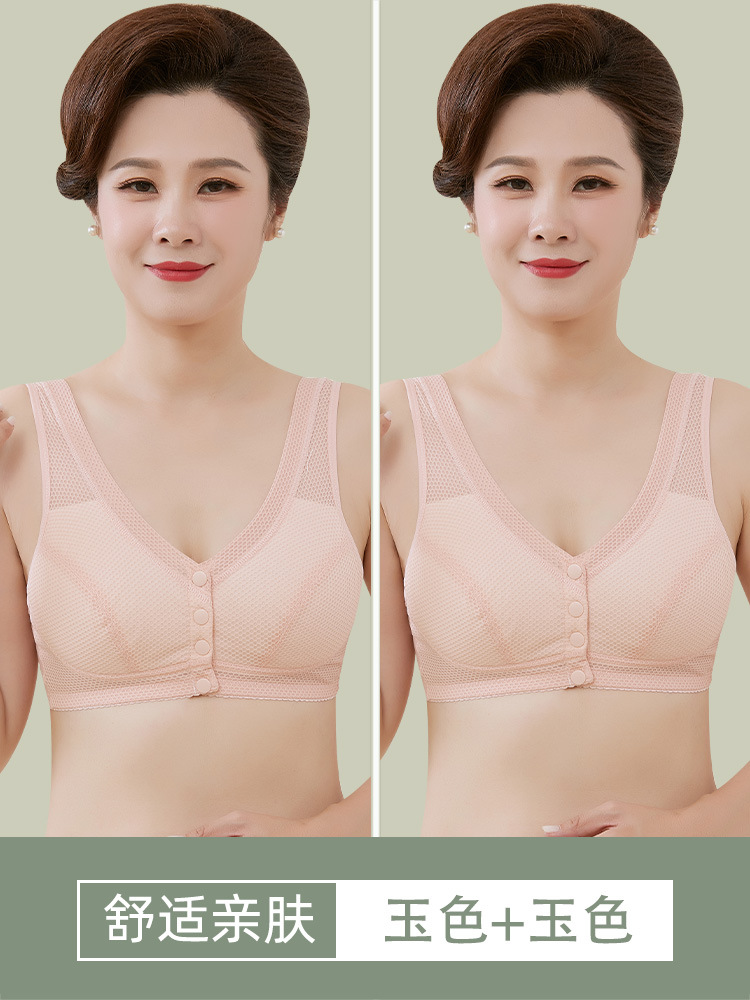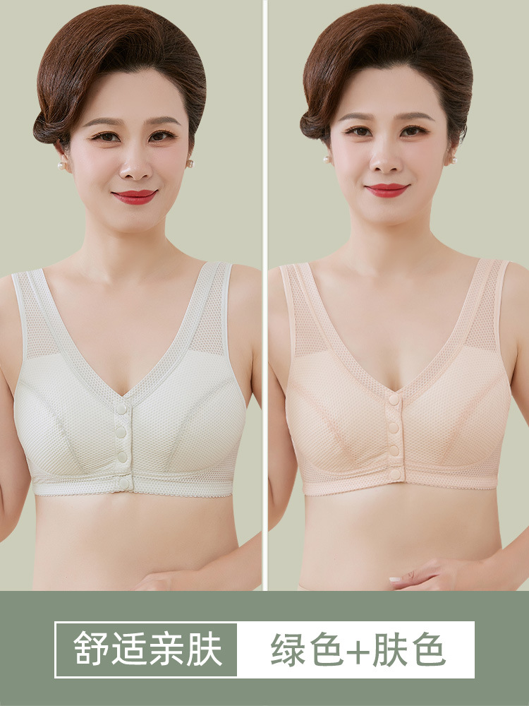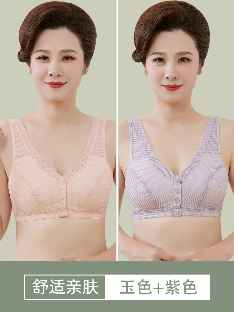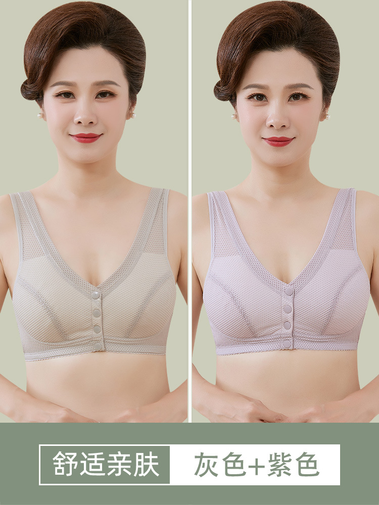 妈妈内衣女中年妇女中老年人女士无钢圈前扣背心式大码文胸透气夏