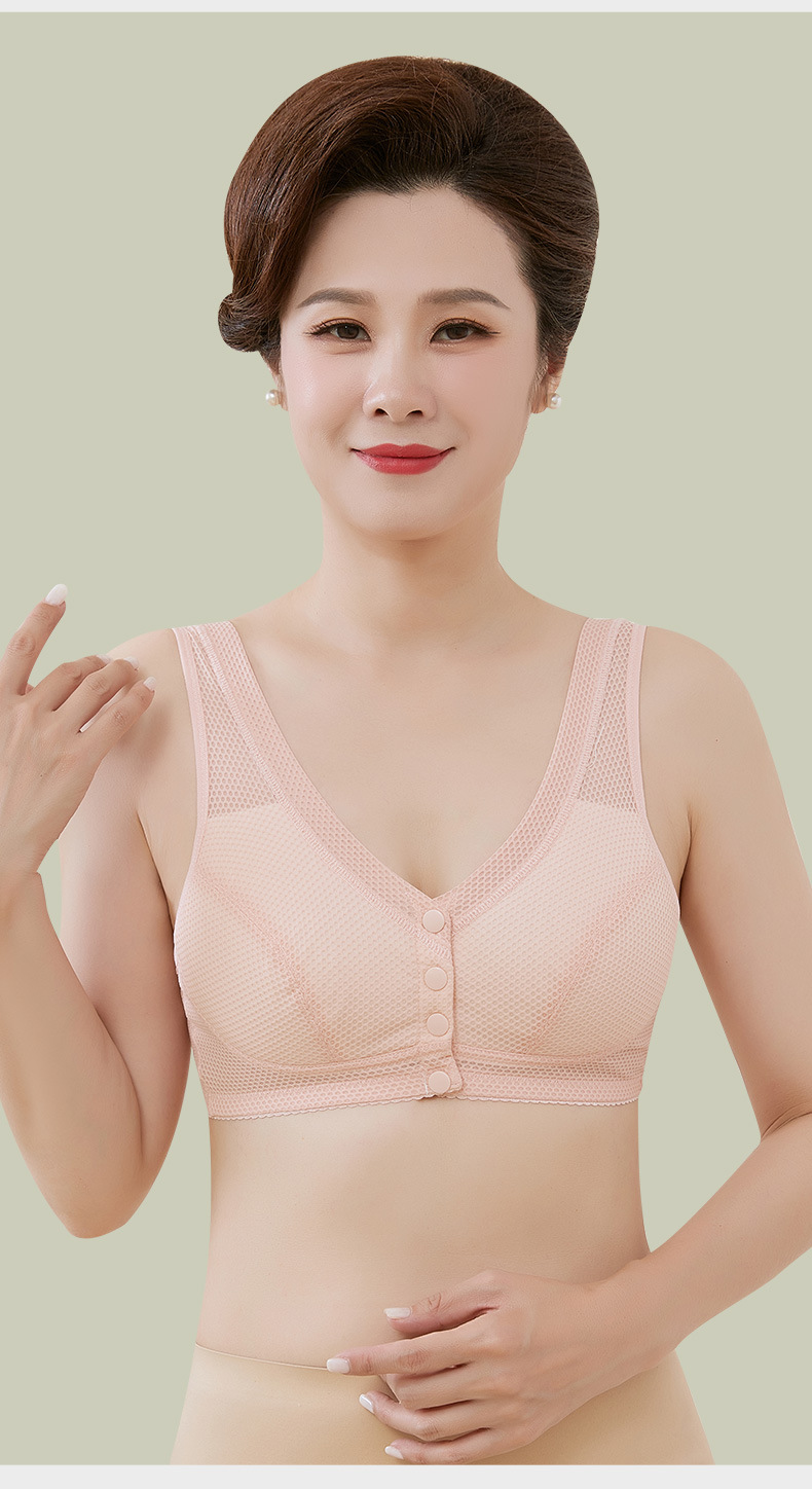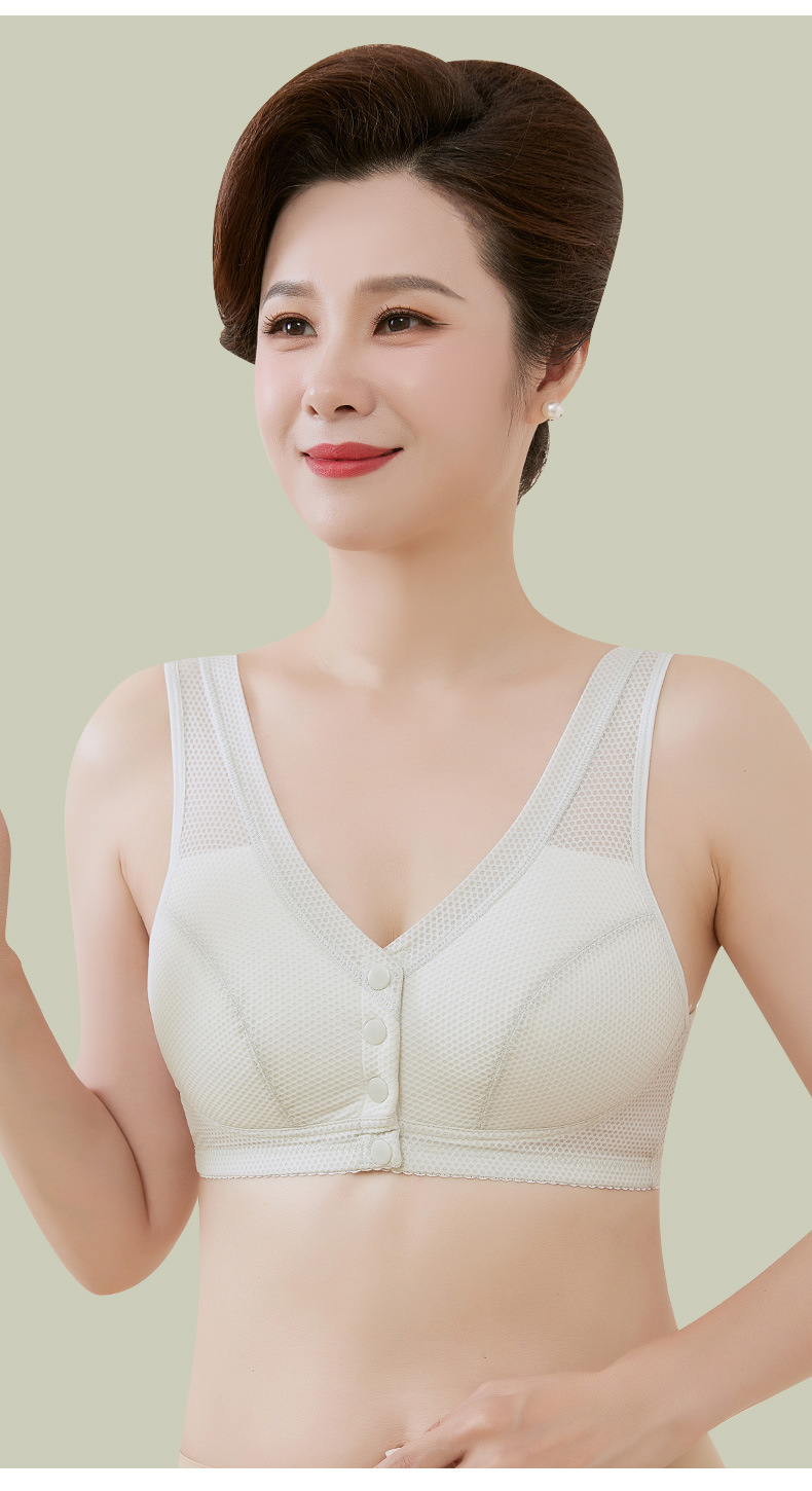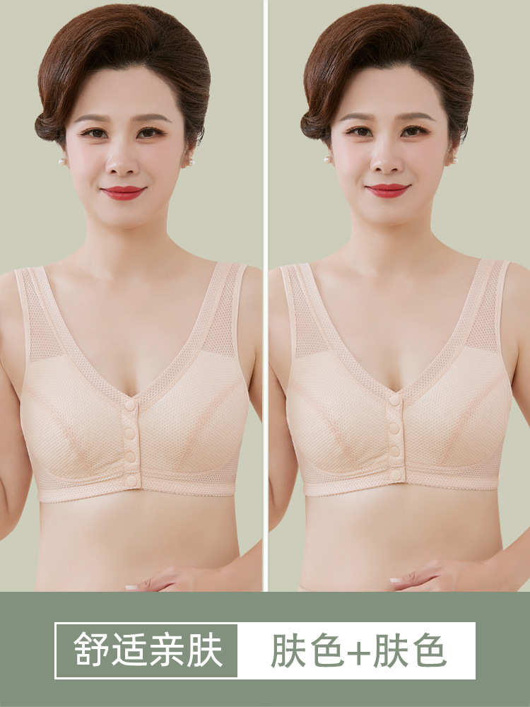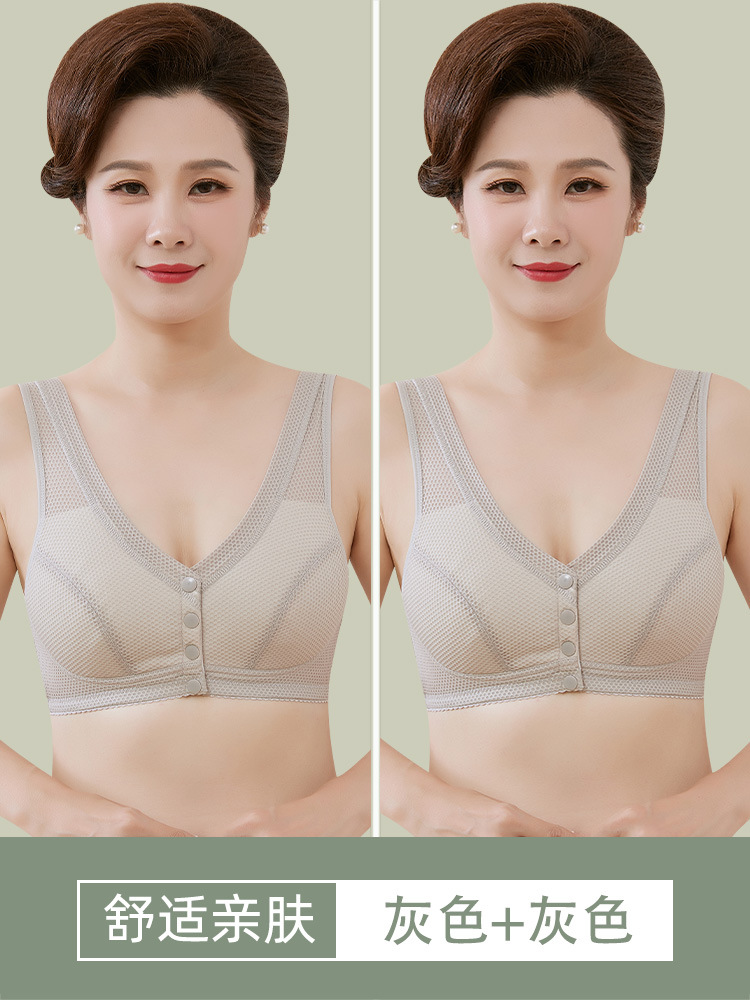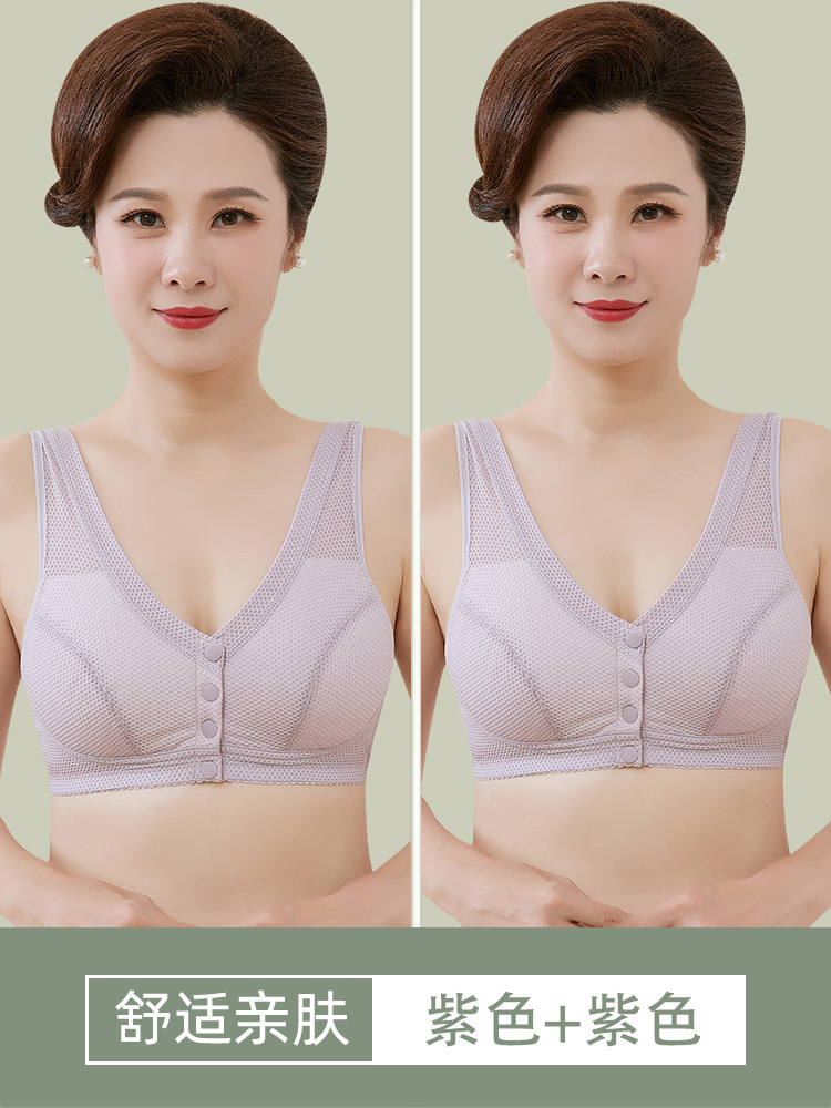 妈妈内衣女中年妇女中老年人女士无钢圈前扣背心式大码文胸透气夏