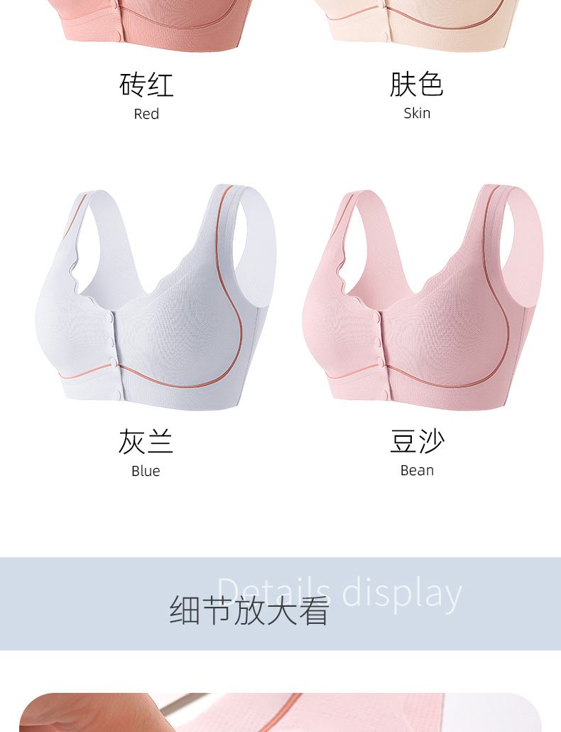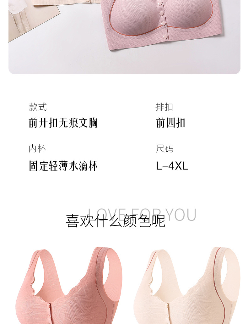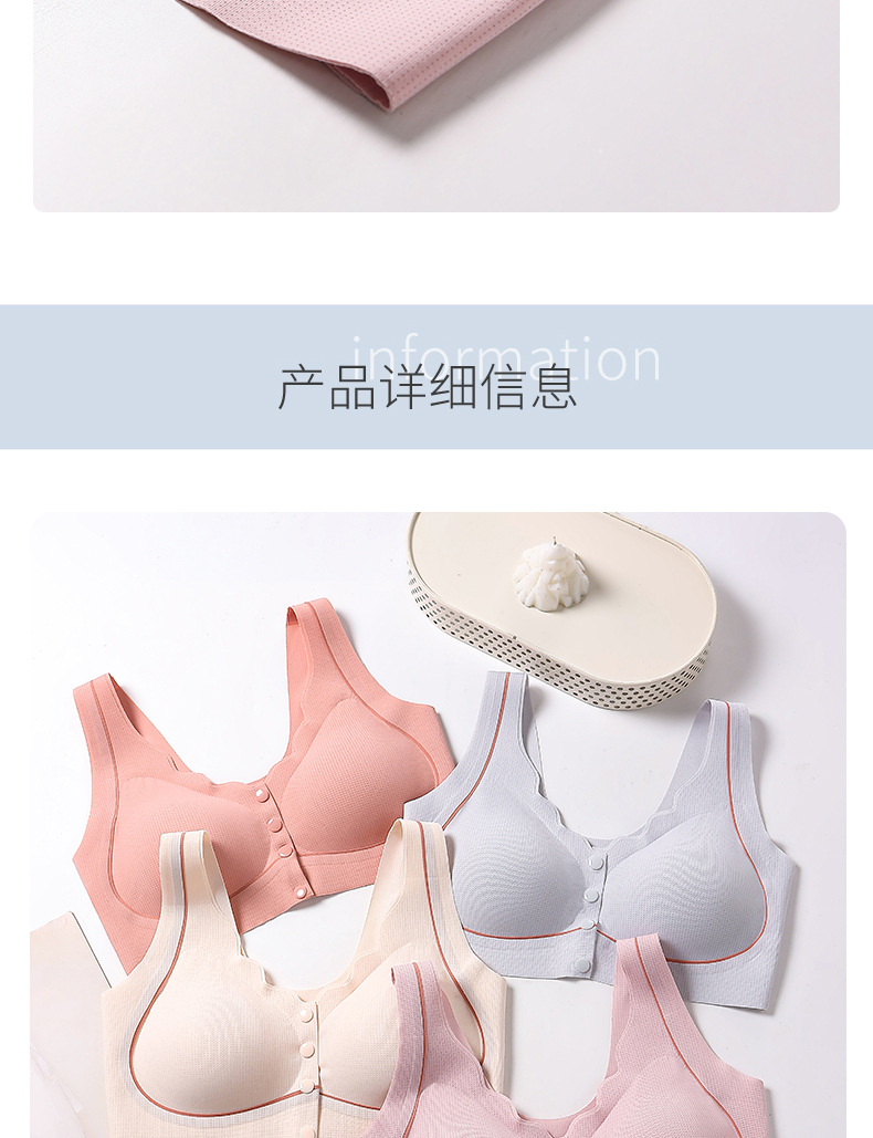 妈妈内衣女背心式前扣文胸大码无钢圈中老年人纯棉文胸罩夏季薄款