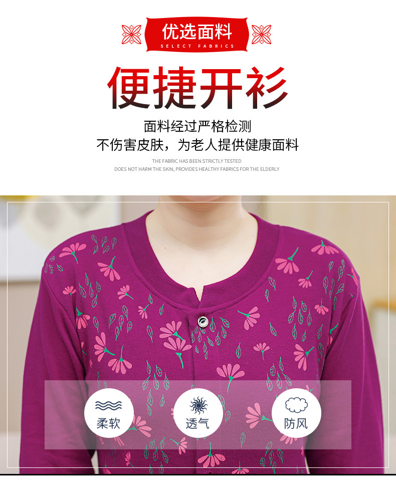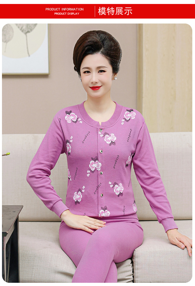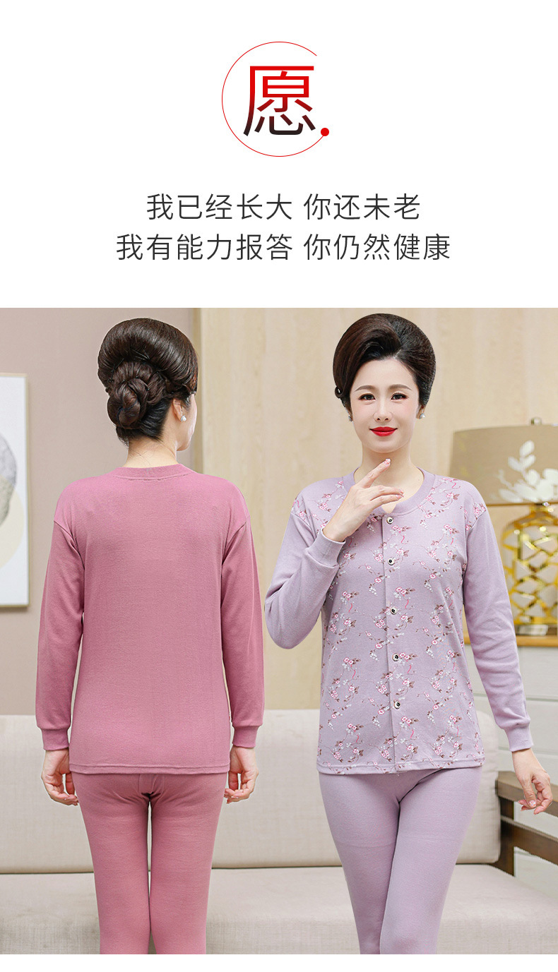 老年人保暖内衣女加绒加厚秋冬款中老年外套女妈妈老奶奶套装开衫