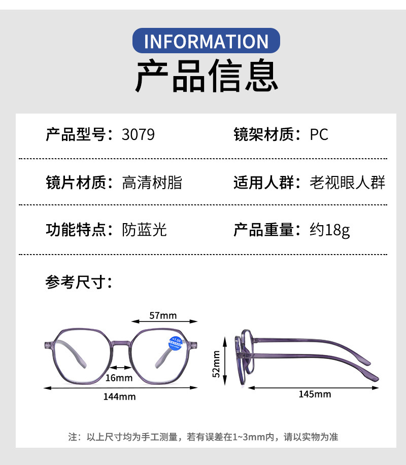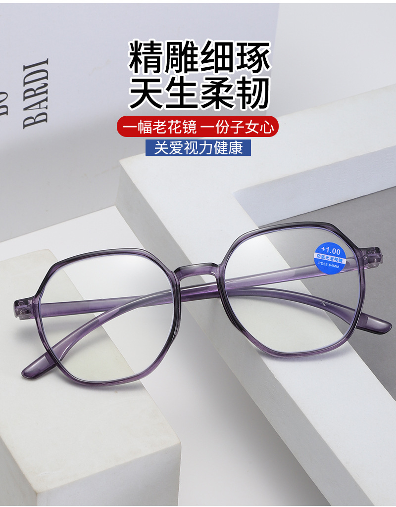 24新款时尚女高清防蓝光老花镜多边形优雅显年轻超轻中老年老花镜