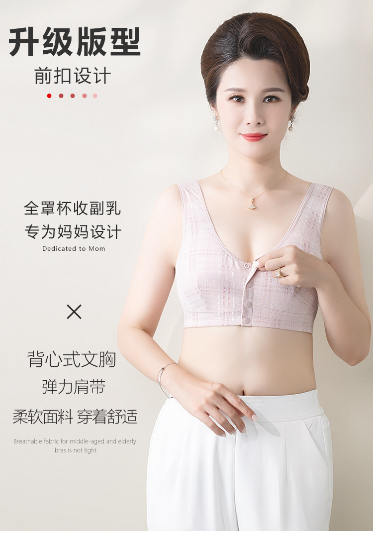 妈妈老人内衣背心式无钢圈透气薄款吸汗胸罩文胸美背女中老年纯棉