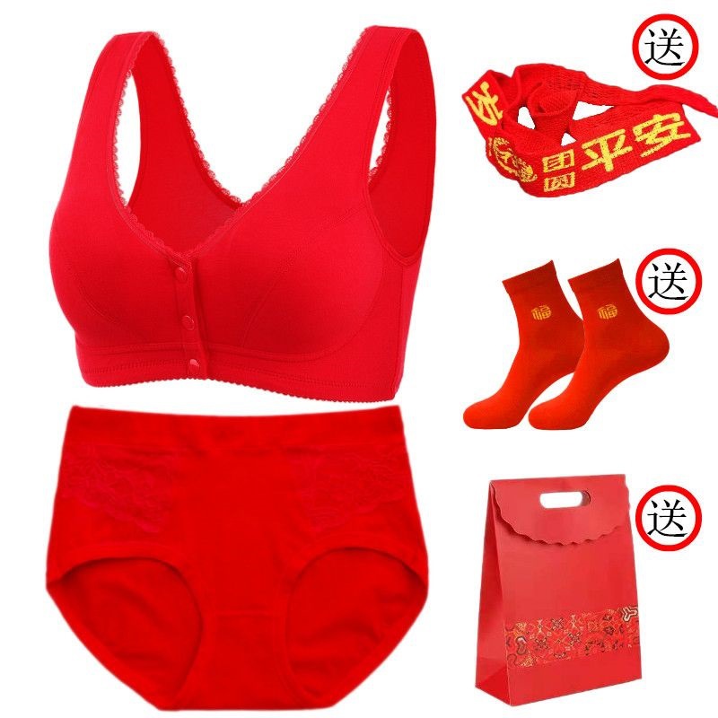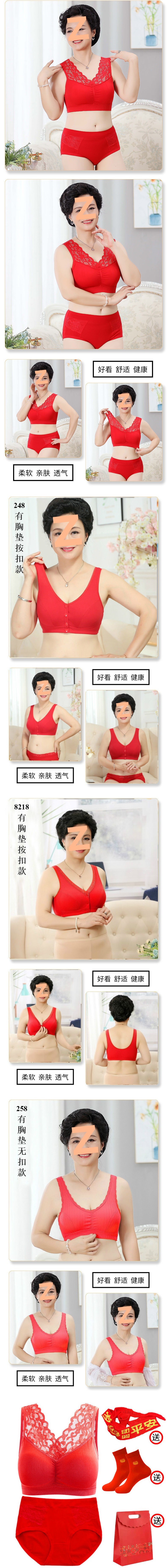 文胸薄款纯棉红色套装妈妈本命年内衣女无钢圈式士大大码背心直销