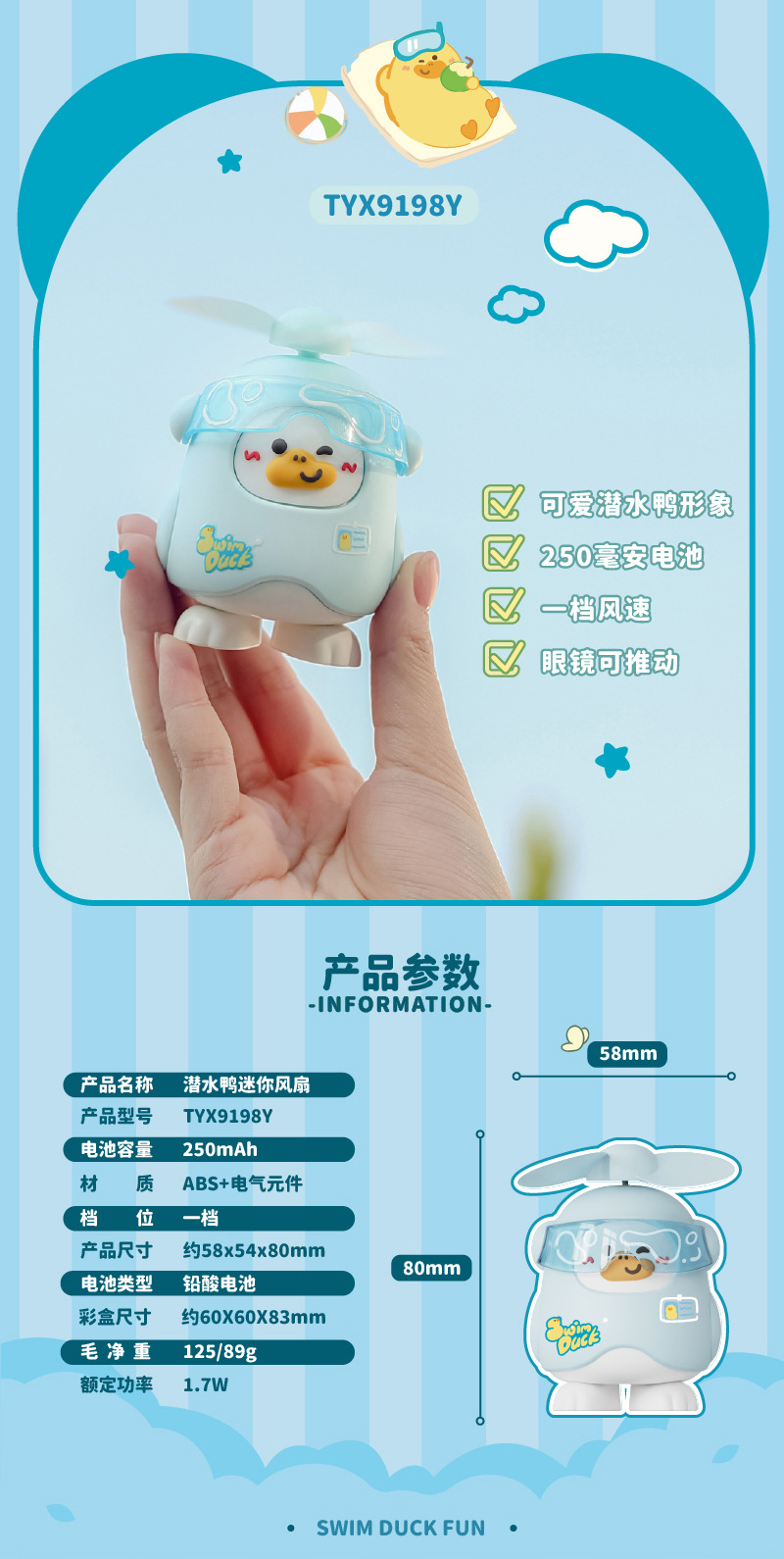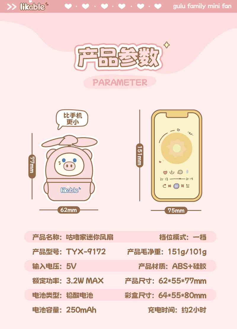 源头厂家抖音风扇可爱迷你小黄鸭卡皮巴拉夏季创意手持可充电学生