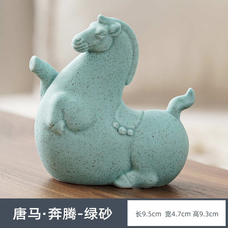 创意陶瓷摇摇马摆件桌面玄关茶桌书房软装饰马上有绿马工艺品送礼