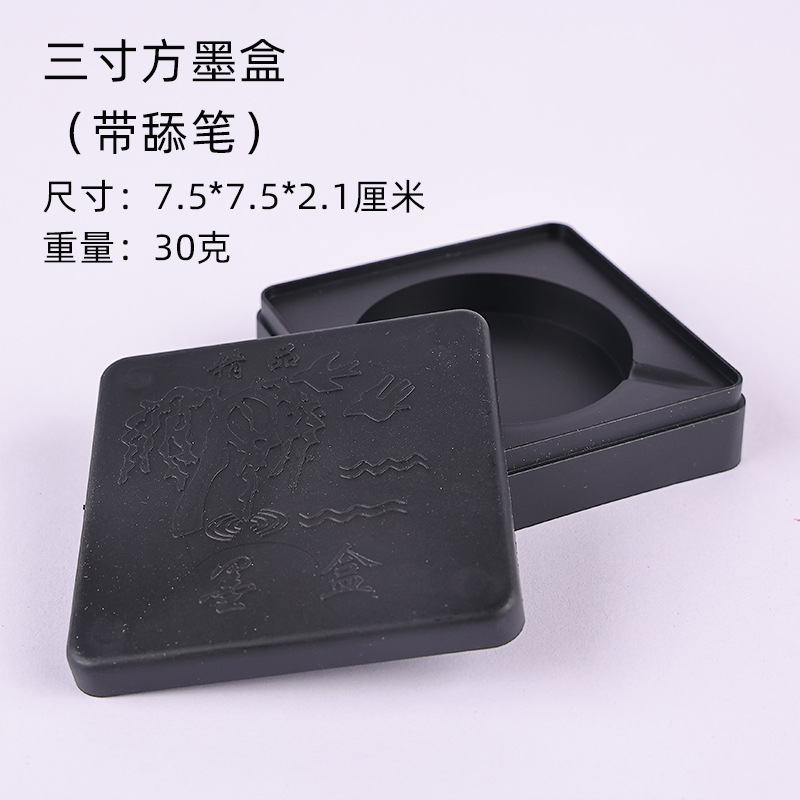 初学者便携砚台墨盒学生书法防干笔舔笔多用墨池砚台带盖墨盒砚台