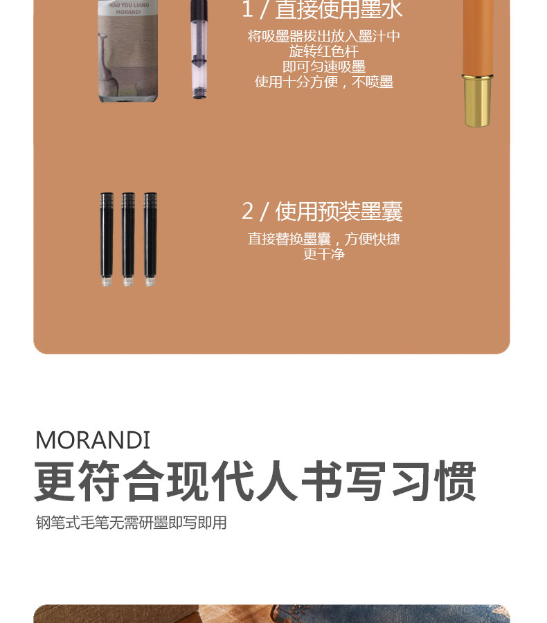 钢笔式毛笔软笔金属狼毫小楷笔抄经笔加墨秀丽笔书法练字自来水笔
