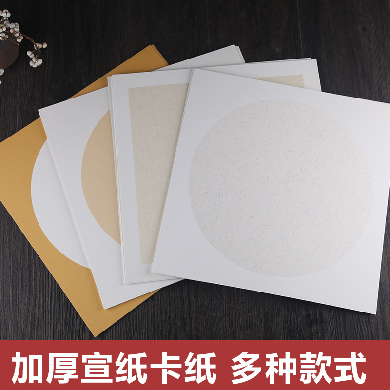 厂家直销加厚美术宣纸卡纸镜片仿古圆形书法麻纸空白国画扇面