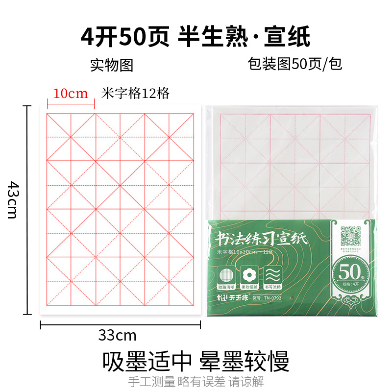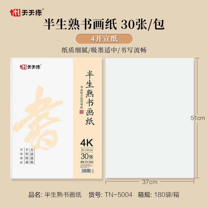 天天练 4开8开生宣熟宣宣纸 入门书法绘画练习宣纸 白色书法宣纸