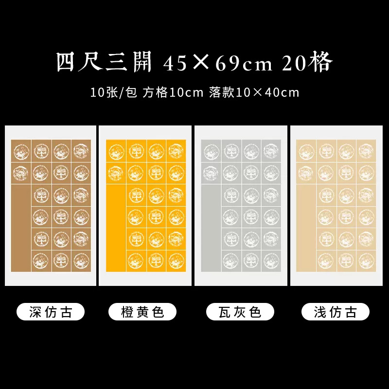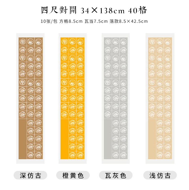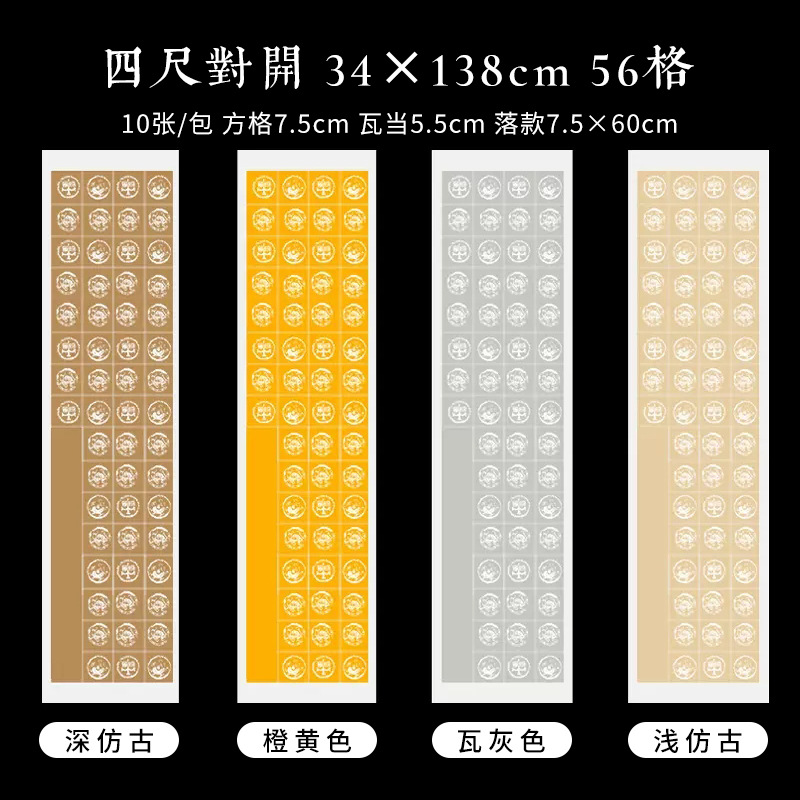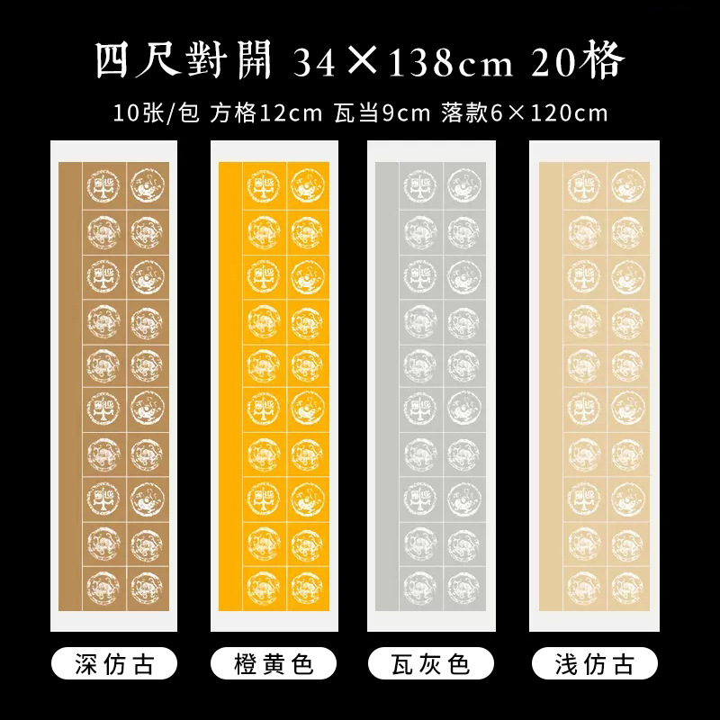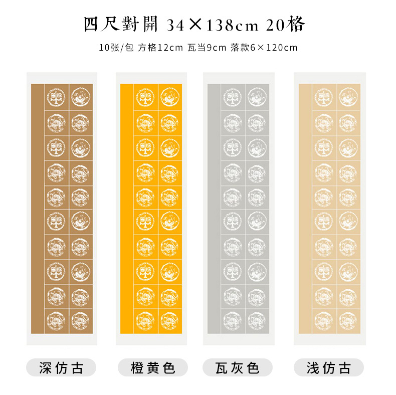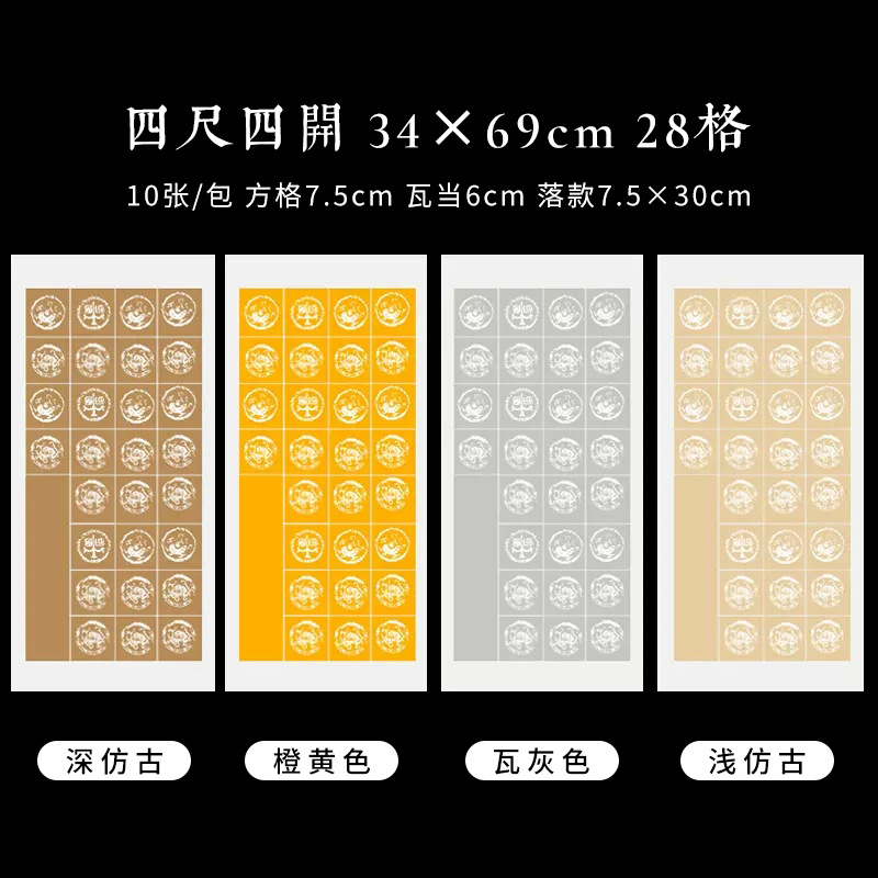四尺对开20格28格粉彩瓦当对联方格半生熟宣纸书法练习作品考级纸