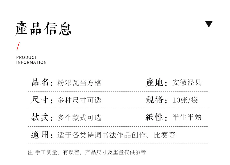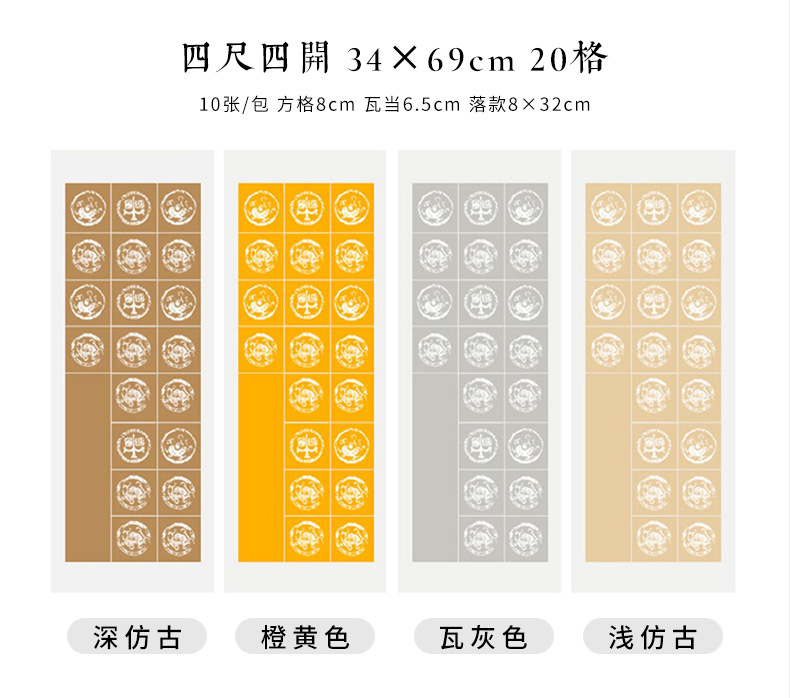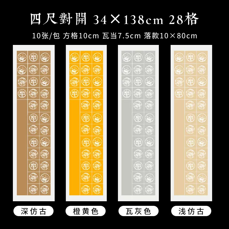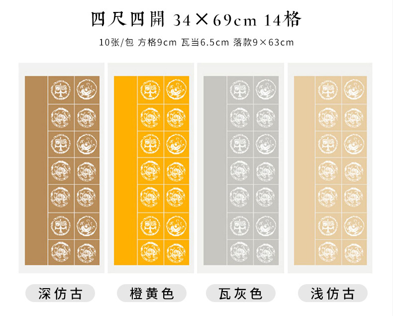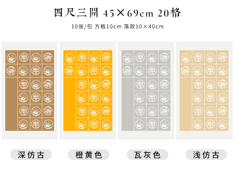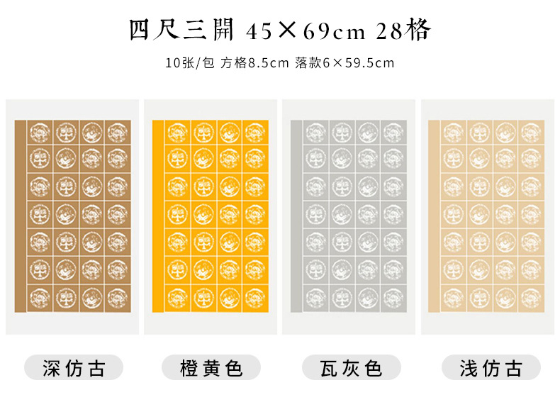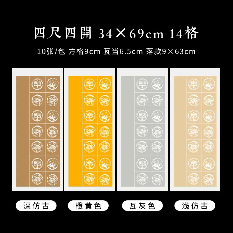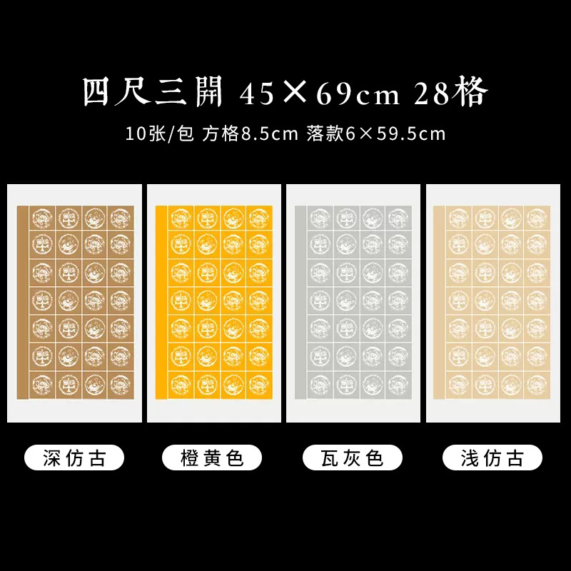 四尺对开20格28格粉彩瓦当对联方格半生熟宣纸书法练习作品考级纸