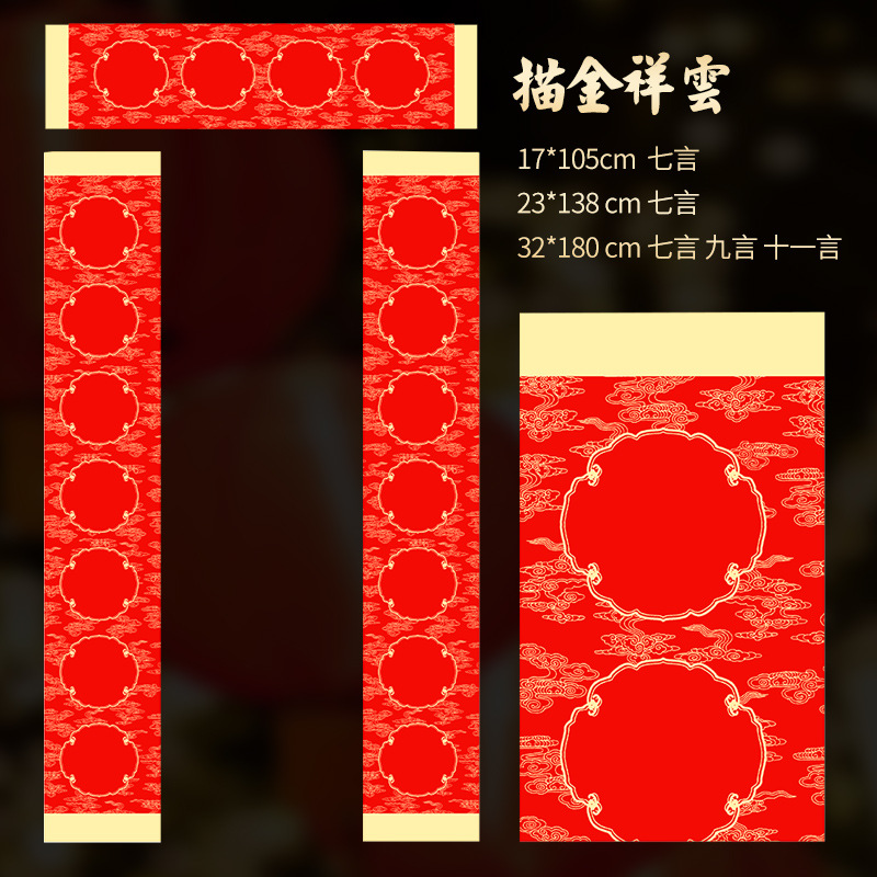 | 17*104 seven words (5 pairs and 5 horizontal/pack)(17*104 七言(5付5横/包)) | USD $0.93 | 4776 pack available |
