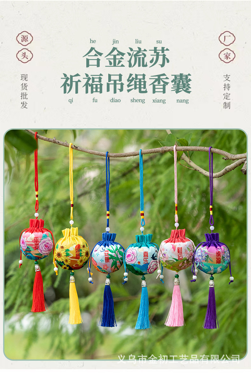新年祈福香囊中式香包车挂件艾草空平安福袋圆形随身国风礼品批发