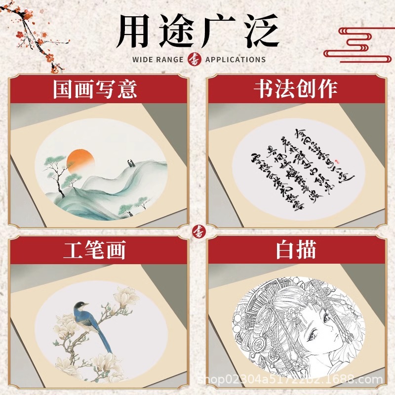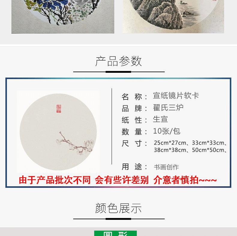 加厚国画空白生宣纸熟宣卡纸半生熟书法专用纸圆形镜片扇面作品纸