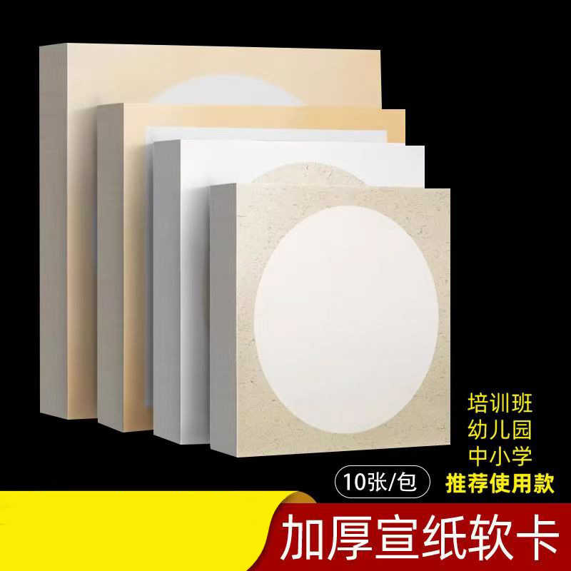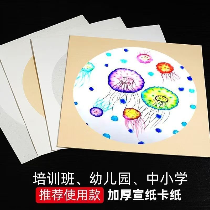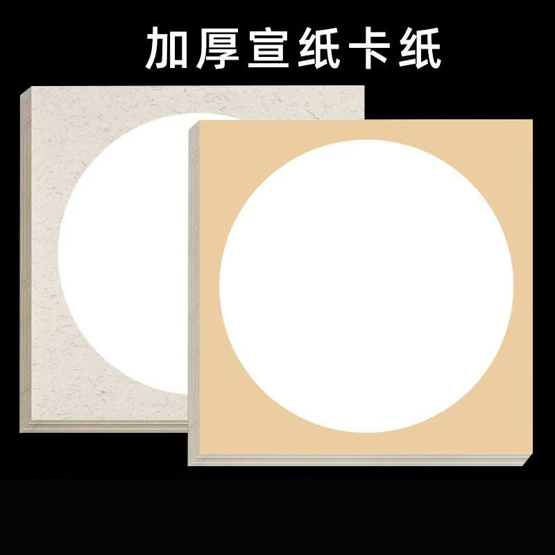 宣卡手工宣纸卡纸镜片镜面仿古圆形书法麻纸空白色国画卡纸卡宣