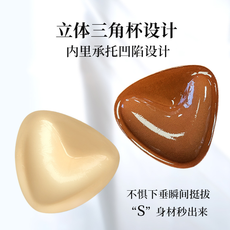 亚马逊双面刷胶胸垫三角V形自粘内衣垫聚拢上托防外扩海绵插片