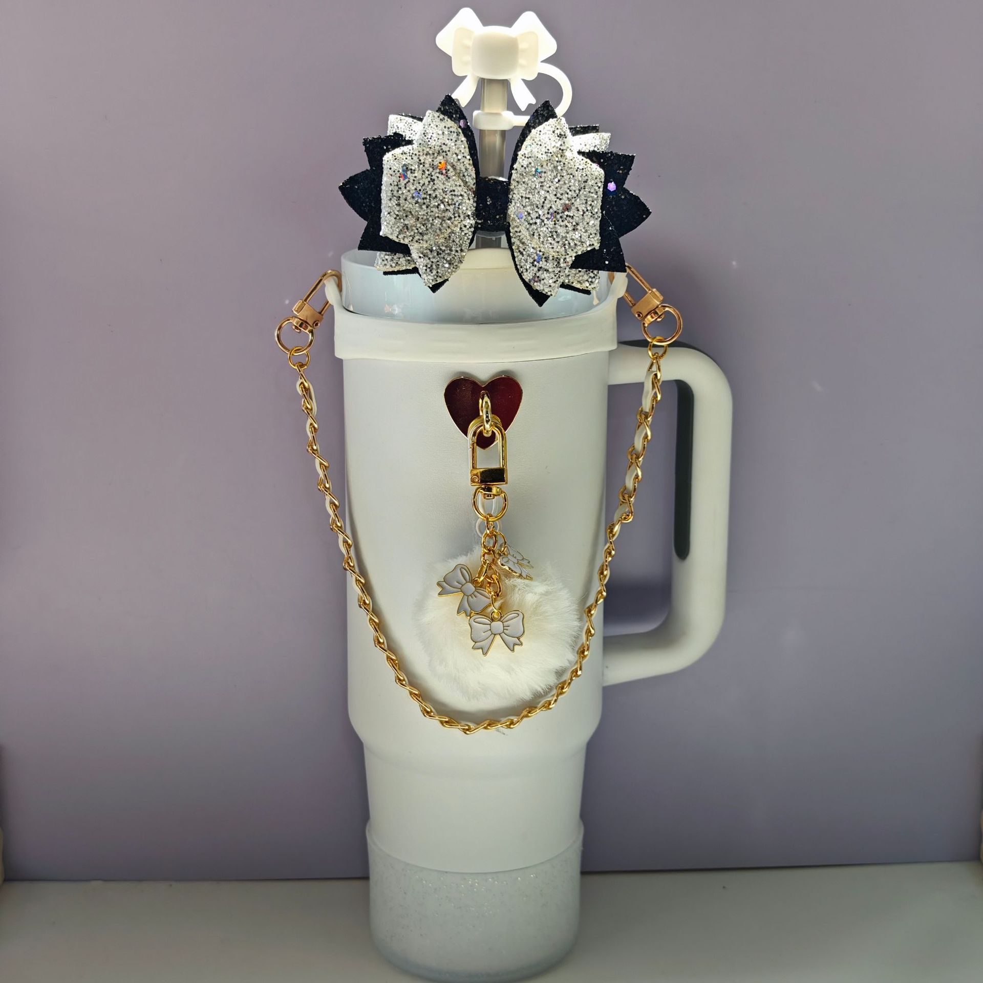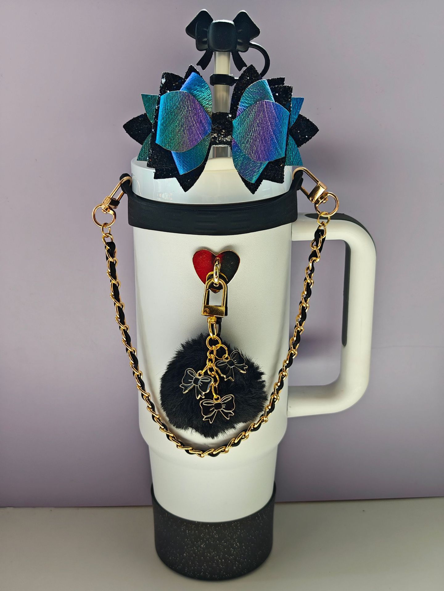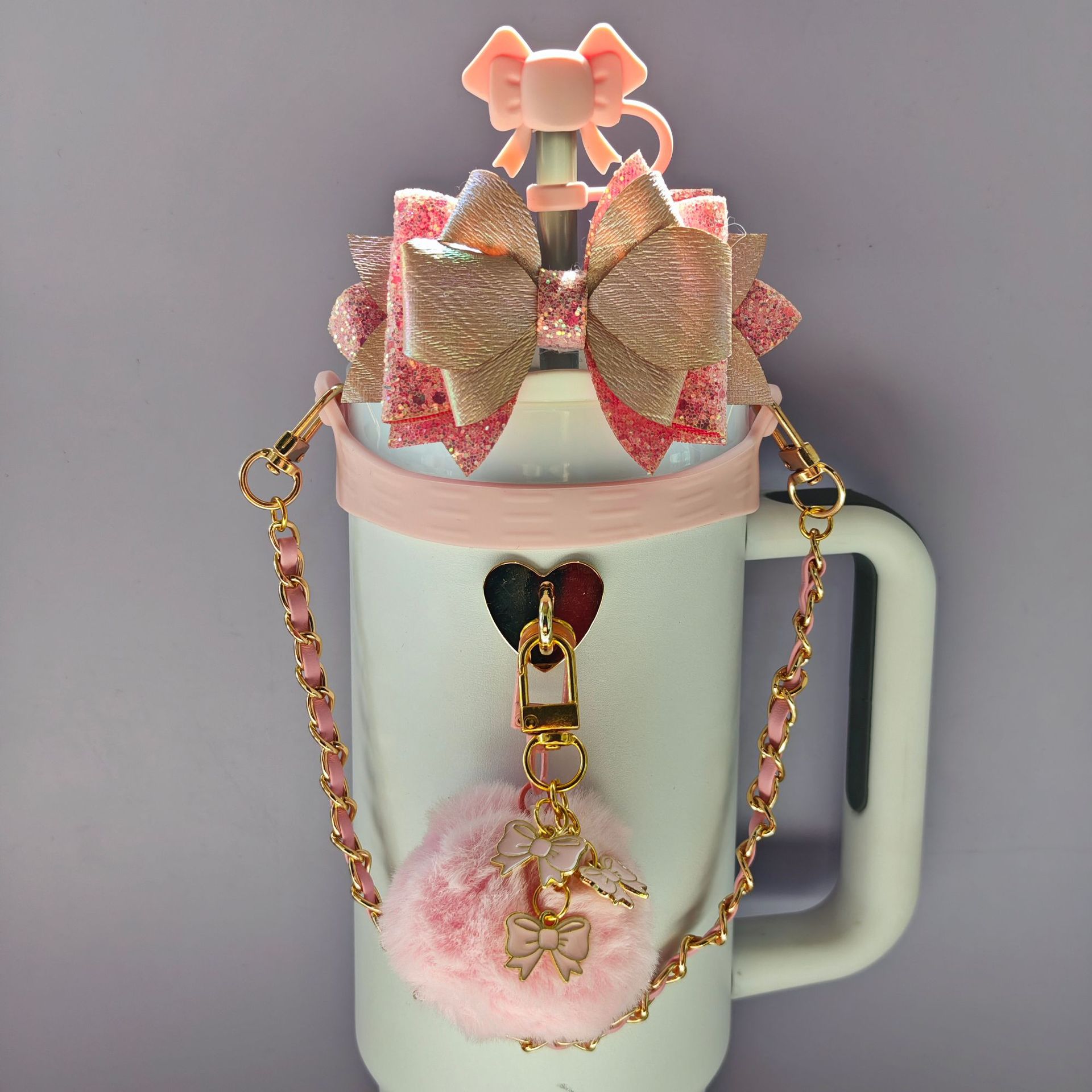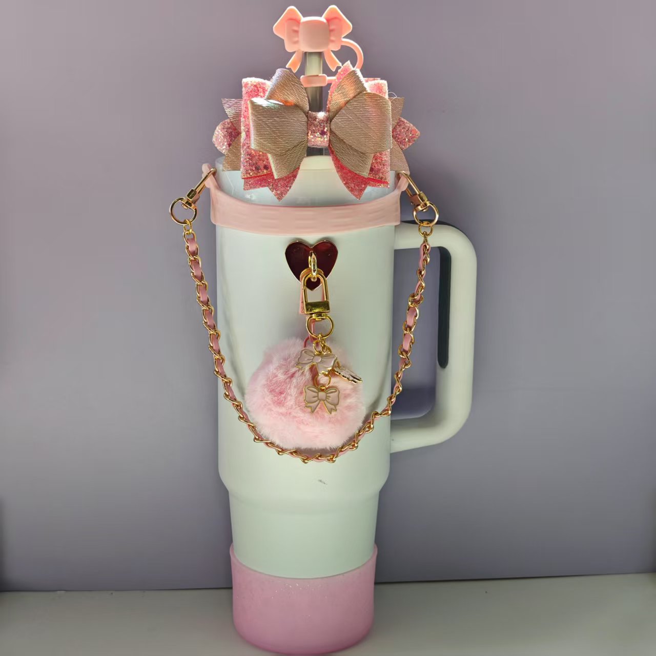 stanley杯手提绳硅胶杯套吸管帽蝴蝶结挂件彩色毛绒球杯链派对装