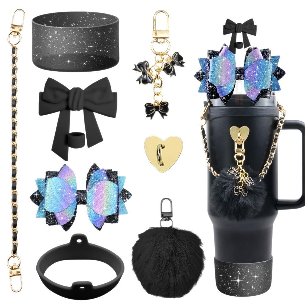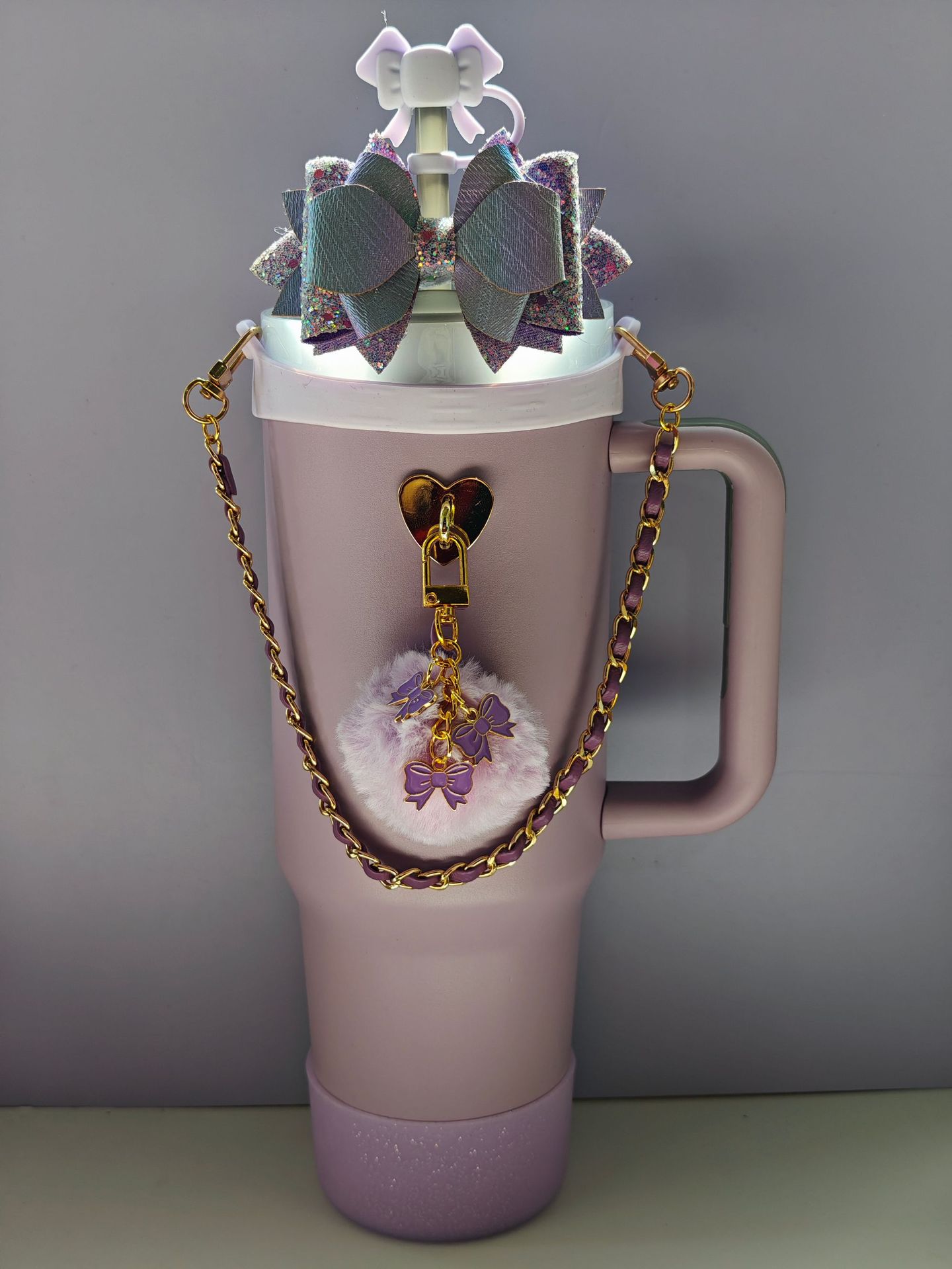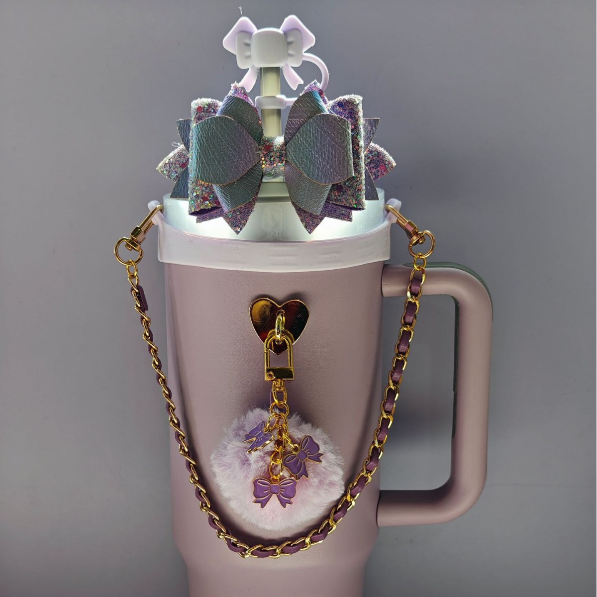 stanley杯手提绳硅胶杯套吸管帽蝴蝶结挂件彩色毛绒球杯链派对装