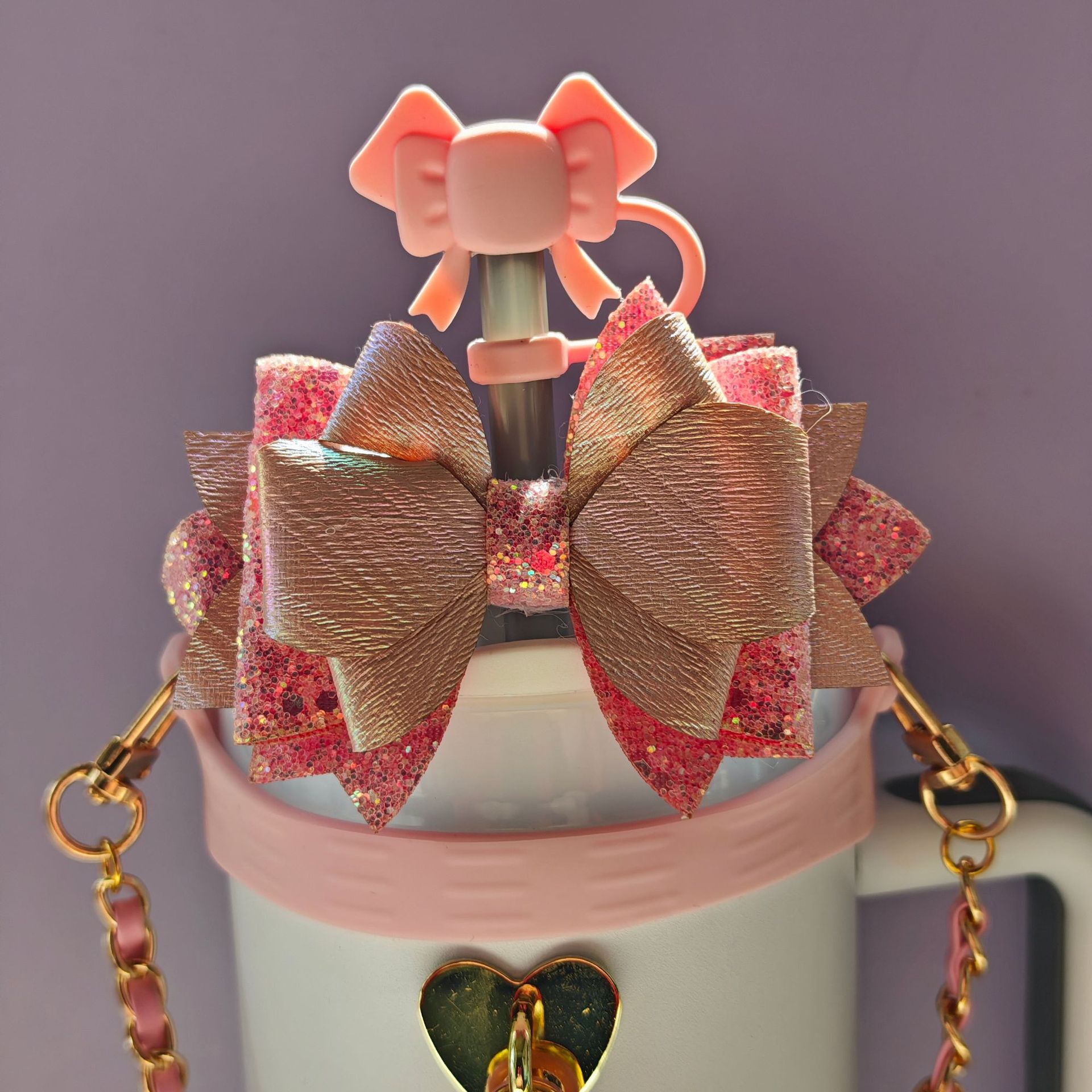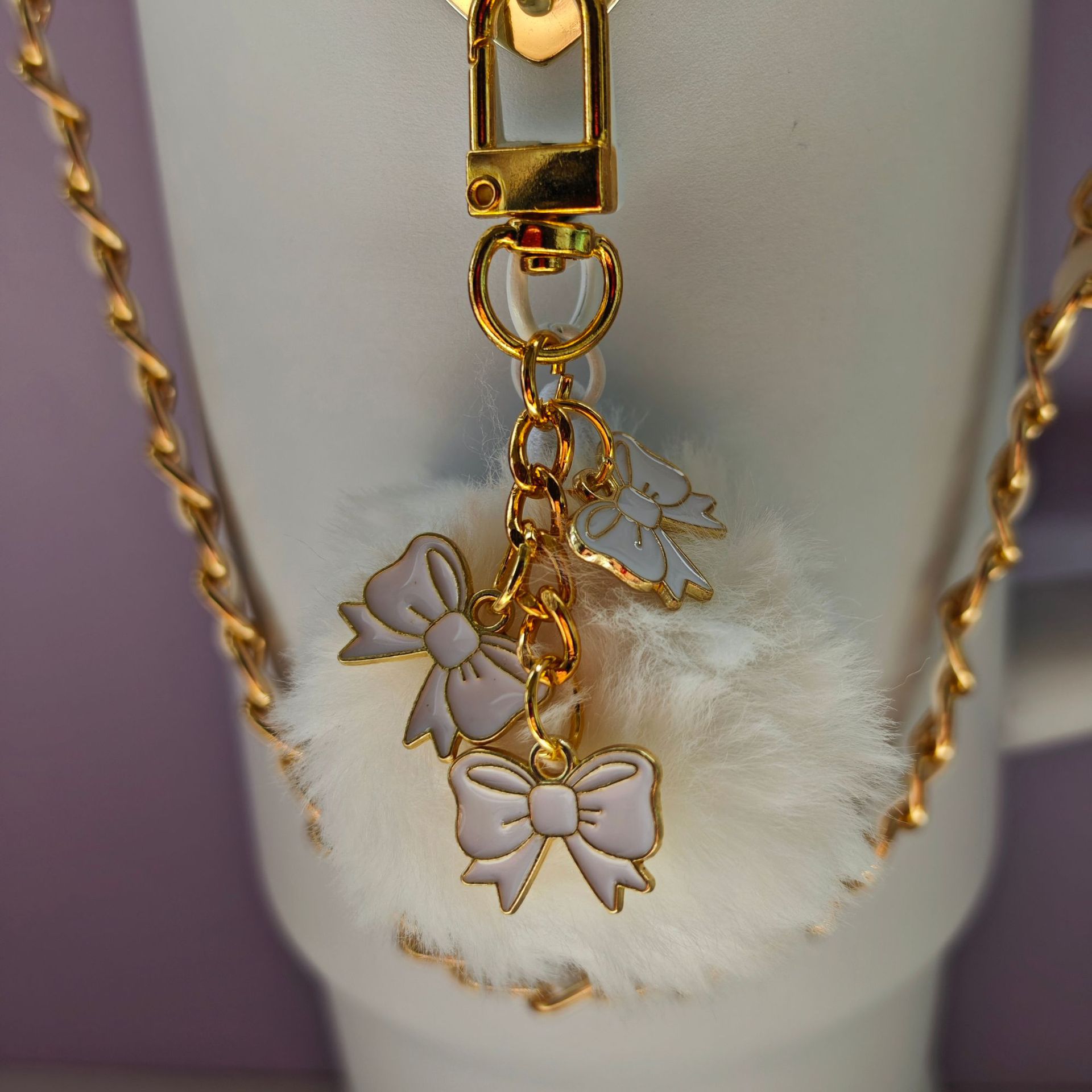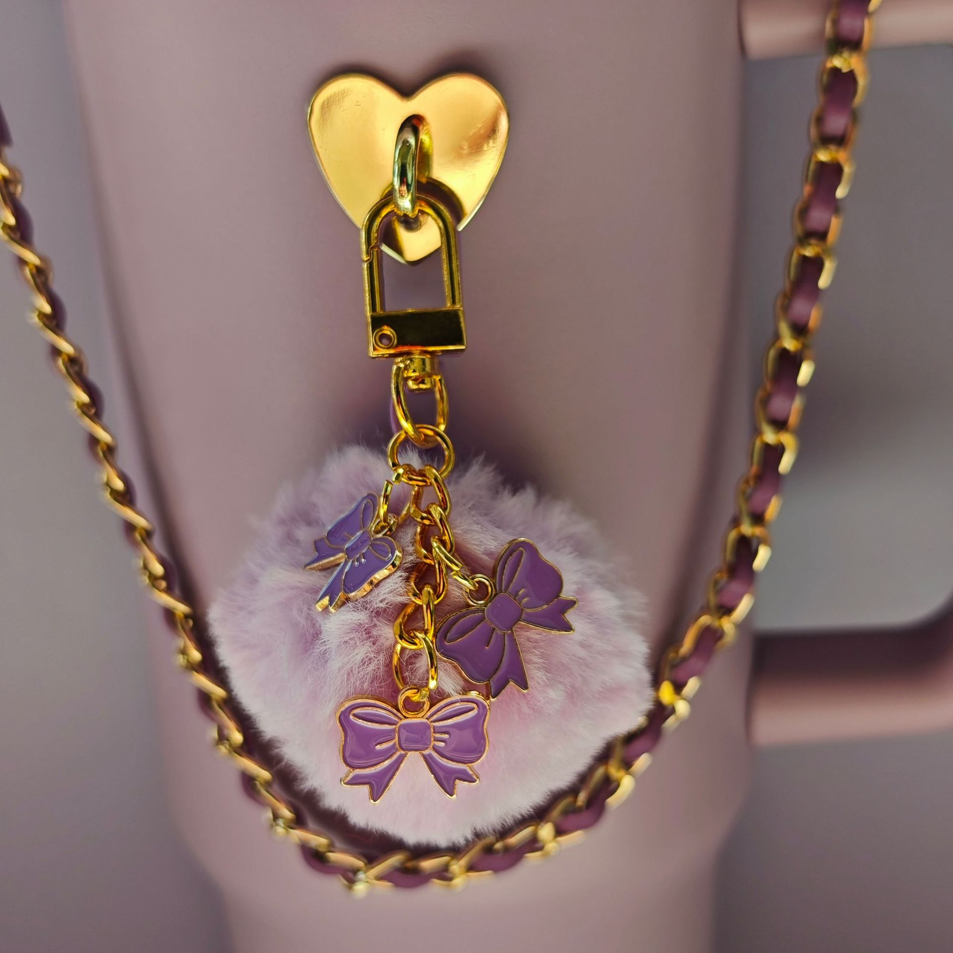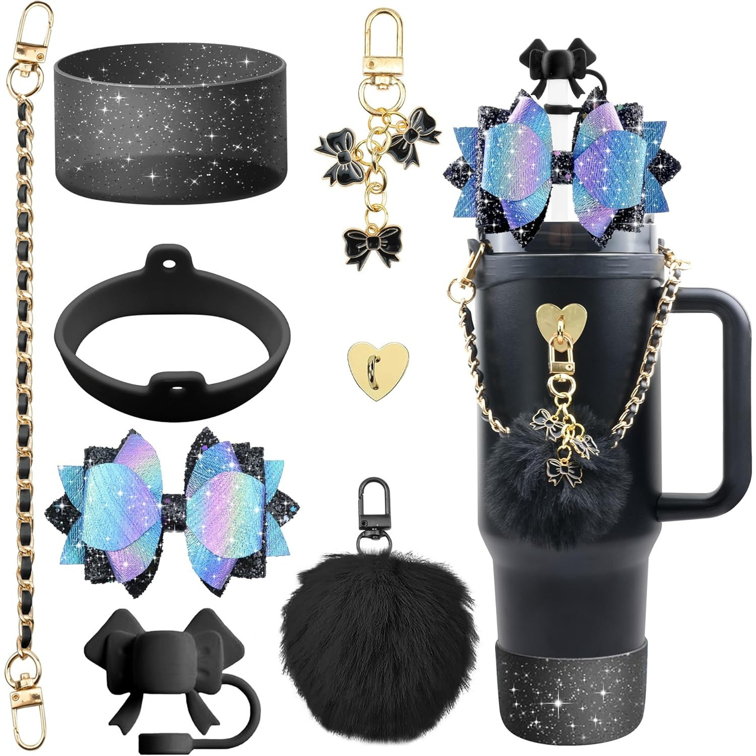 stanley杯手提绳硅胶杯套吸管帽蝴蝶结挂件彩色毛绒球杯链派对装