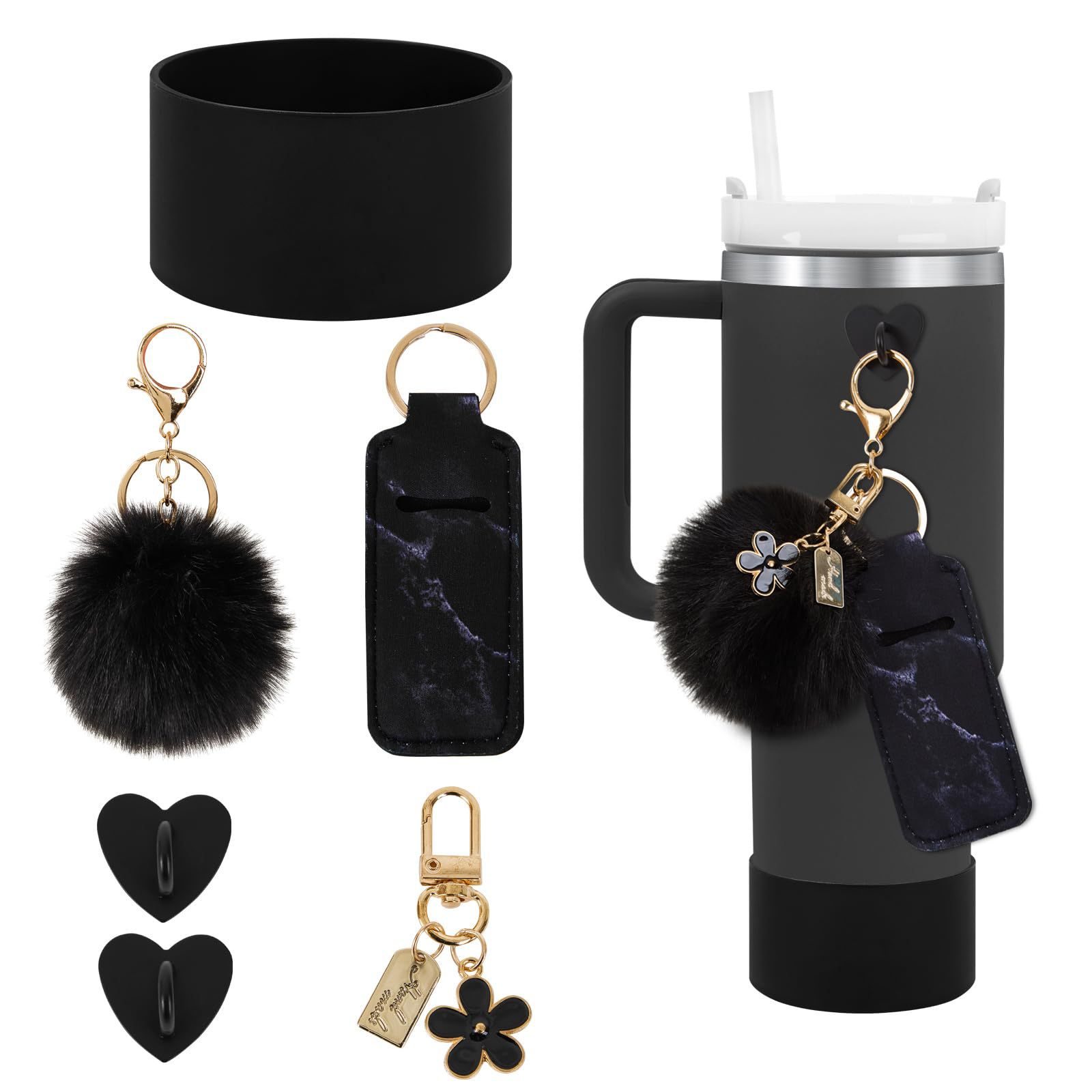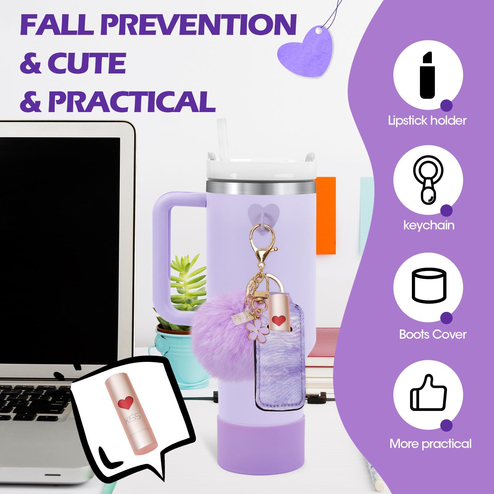 新款Stanley杯装饰吸管帽杯套杯链ins彩色花朵钥匙挂件毛绒球吊坠