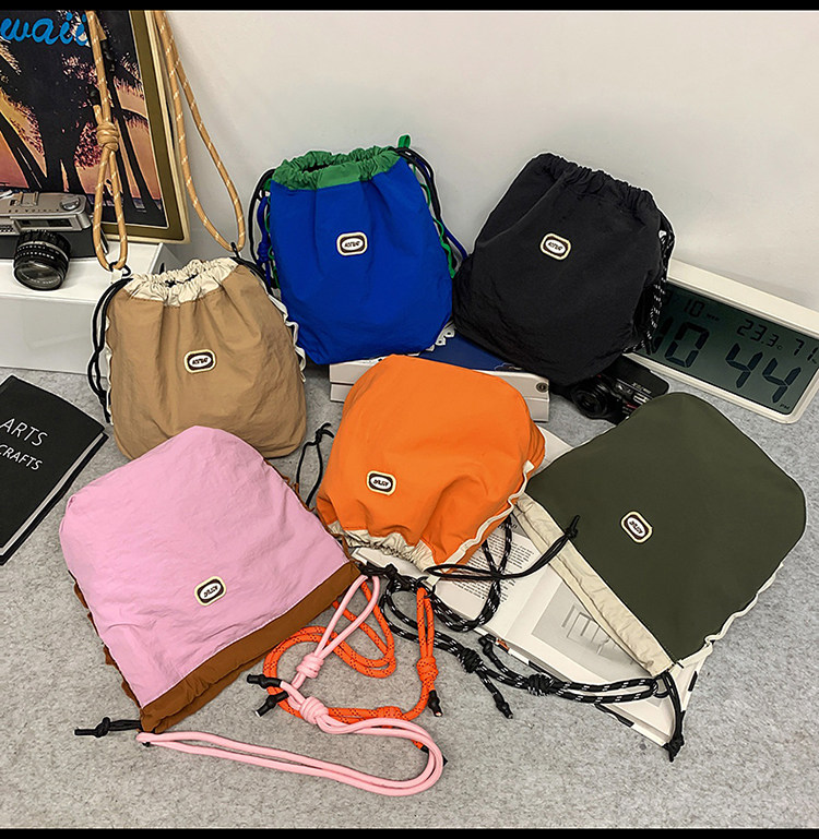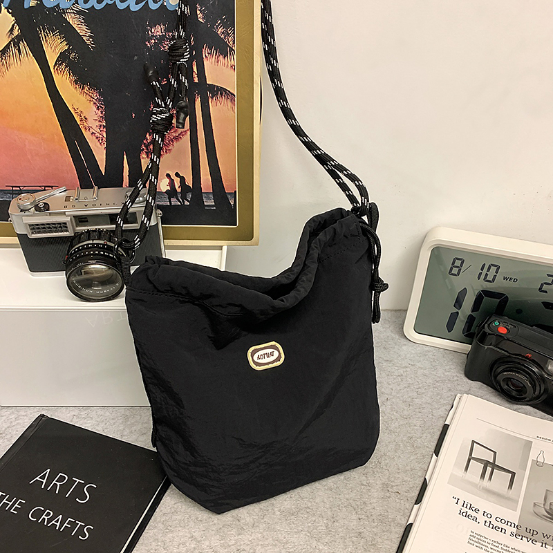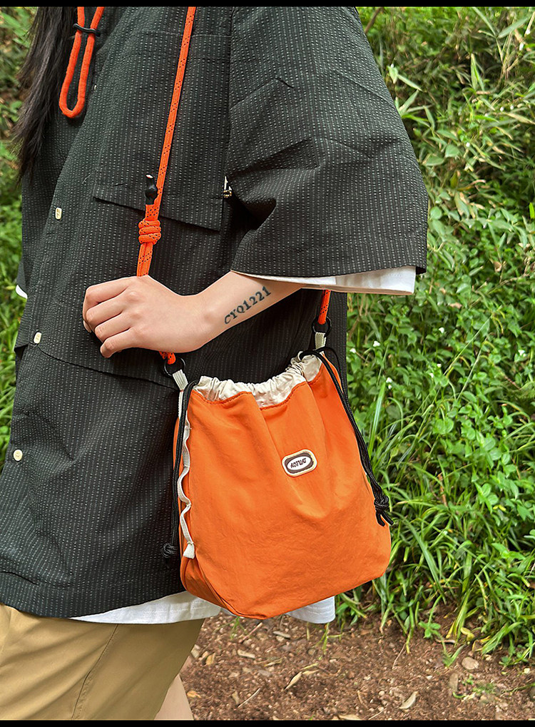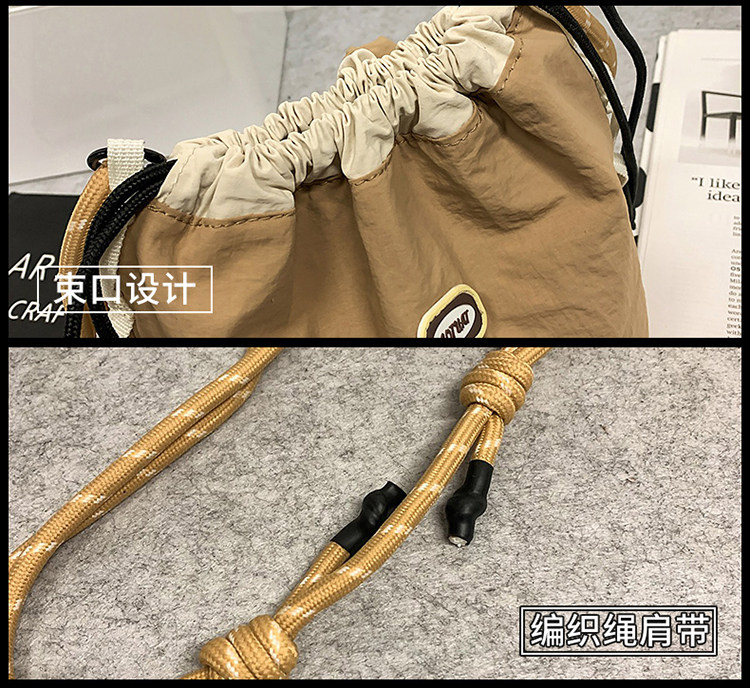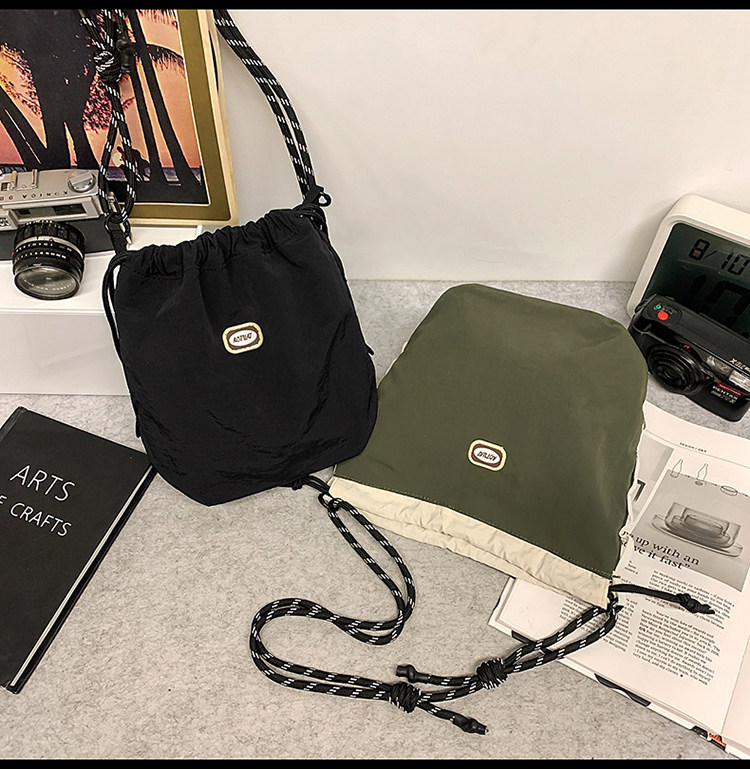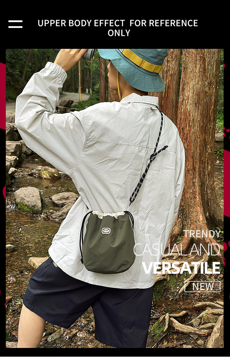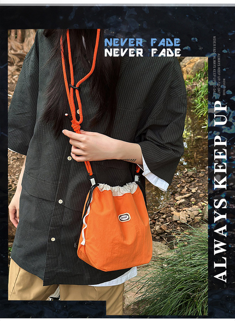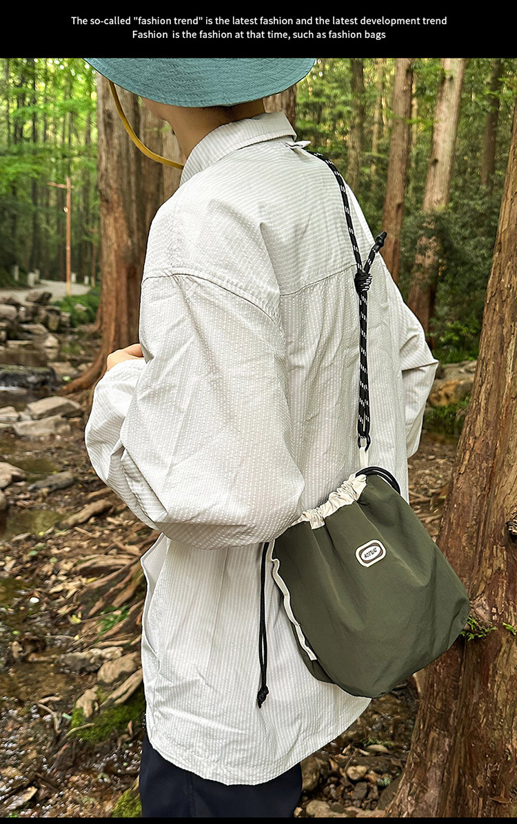 ins潮牌个性斜挎包抽绳束口百搭手机包轻便运动水桶包休闲单肩包