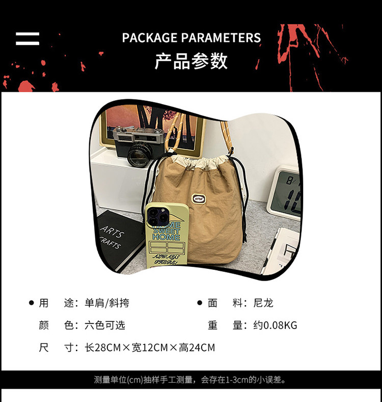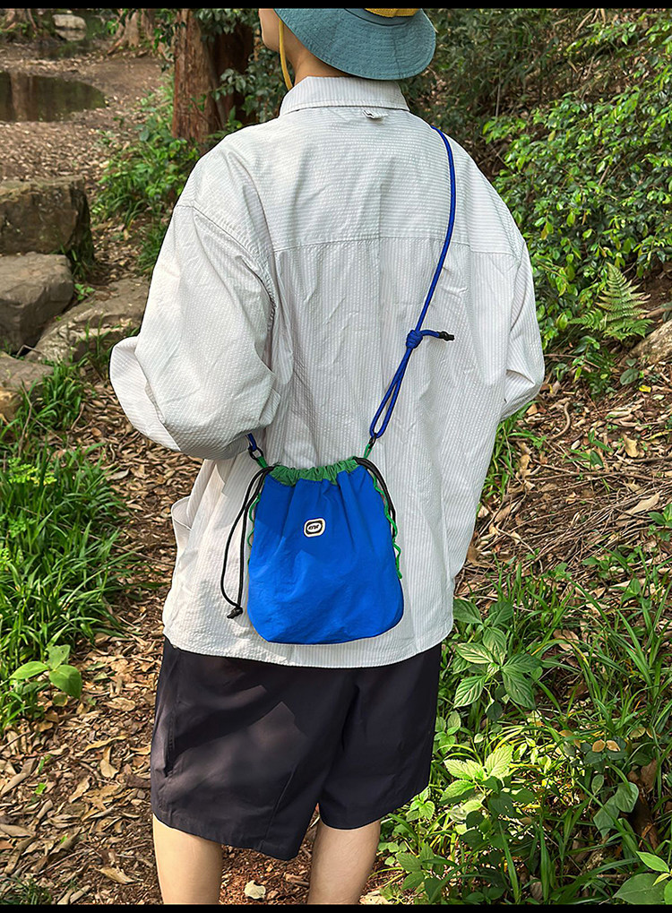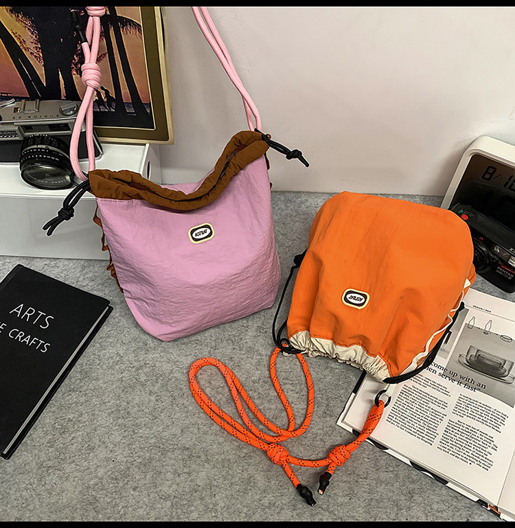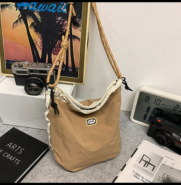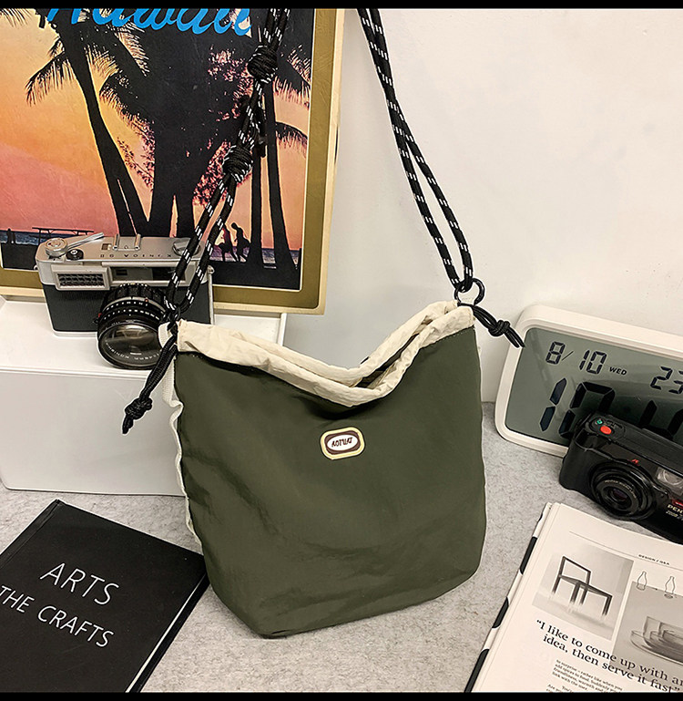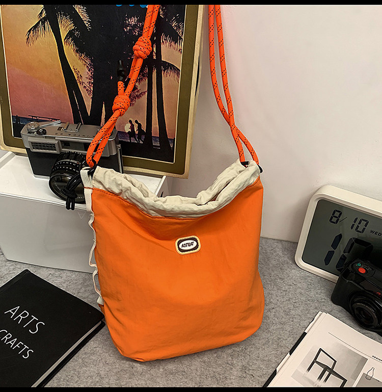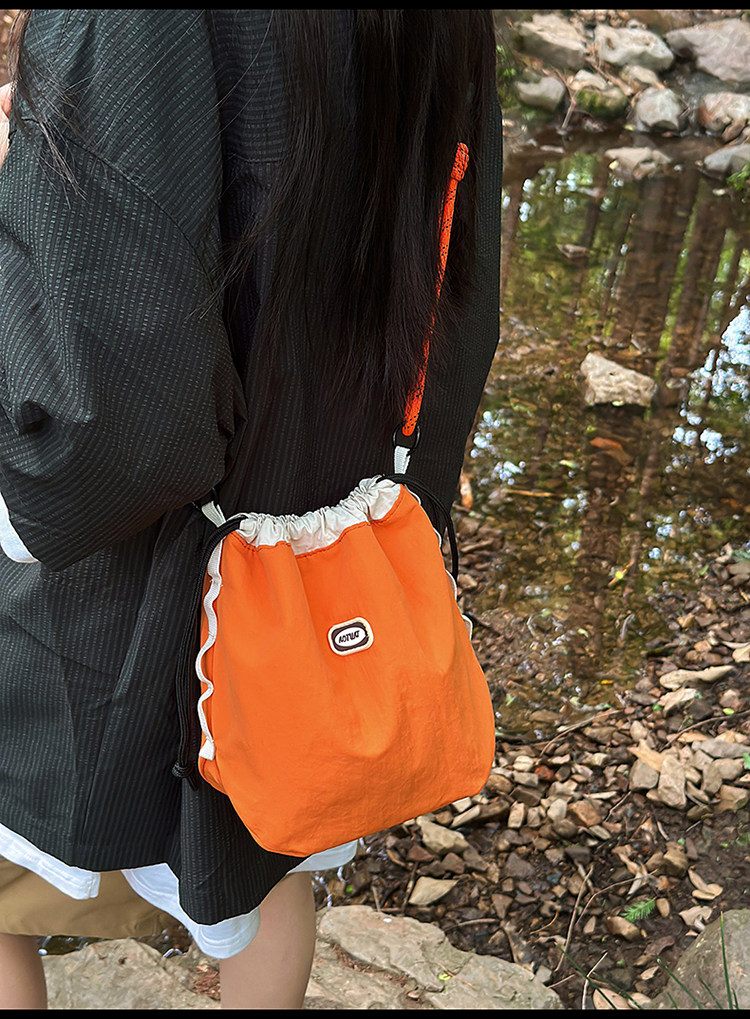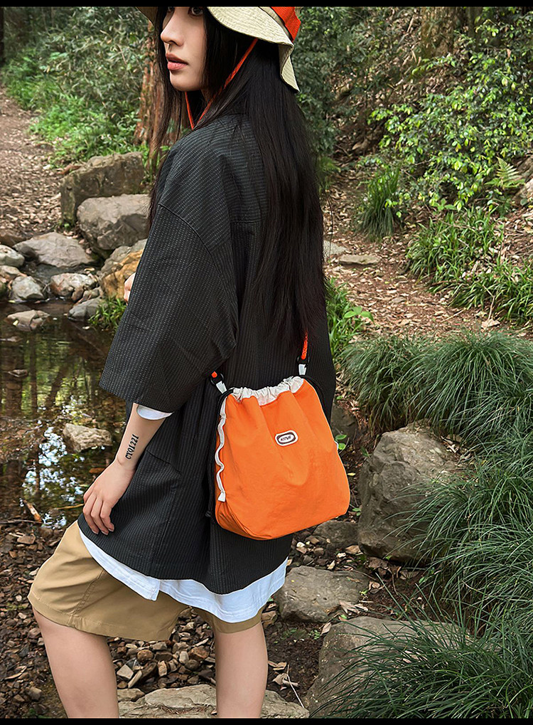 ins潮牌个性斜挎包抽绳束口百搭手机包轻便运动水桶包休闲单肩包