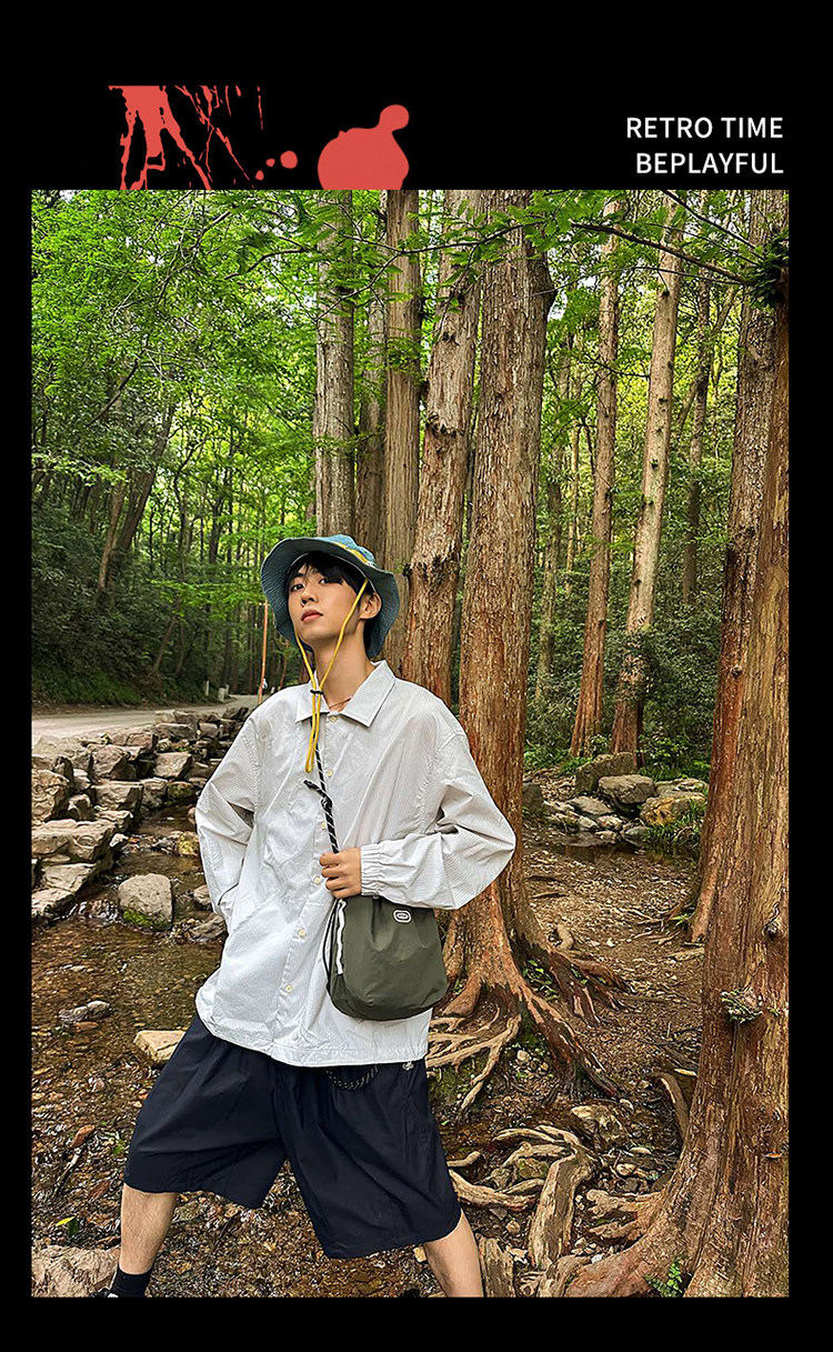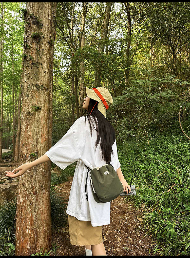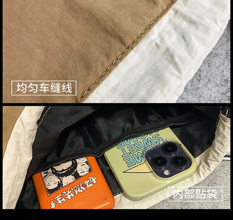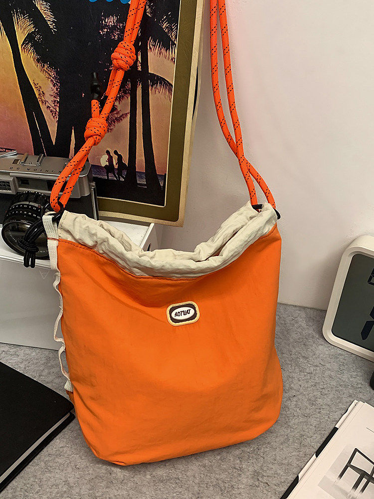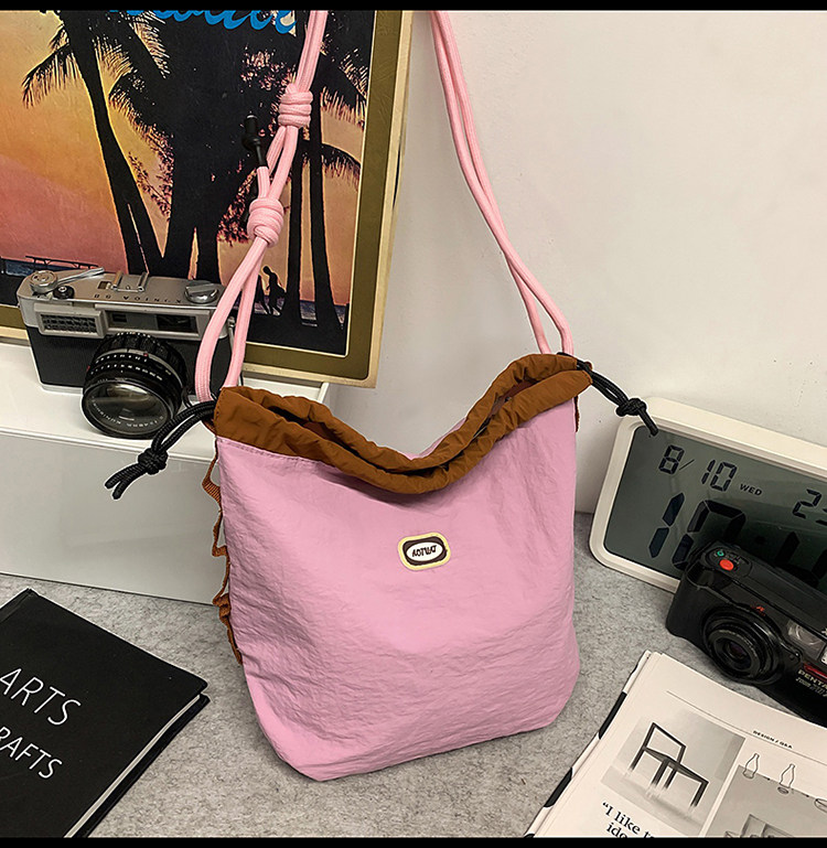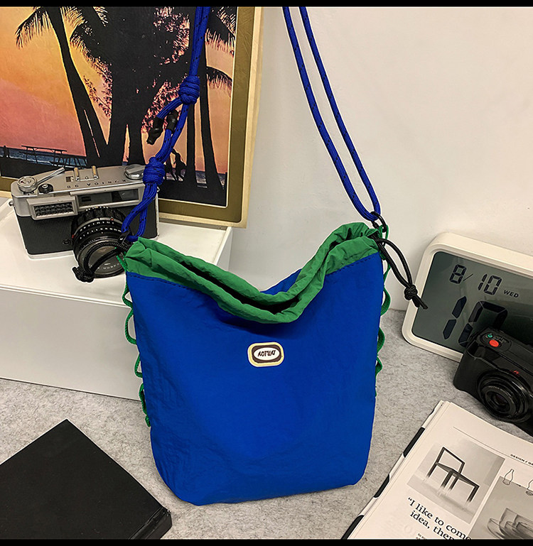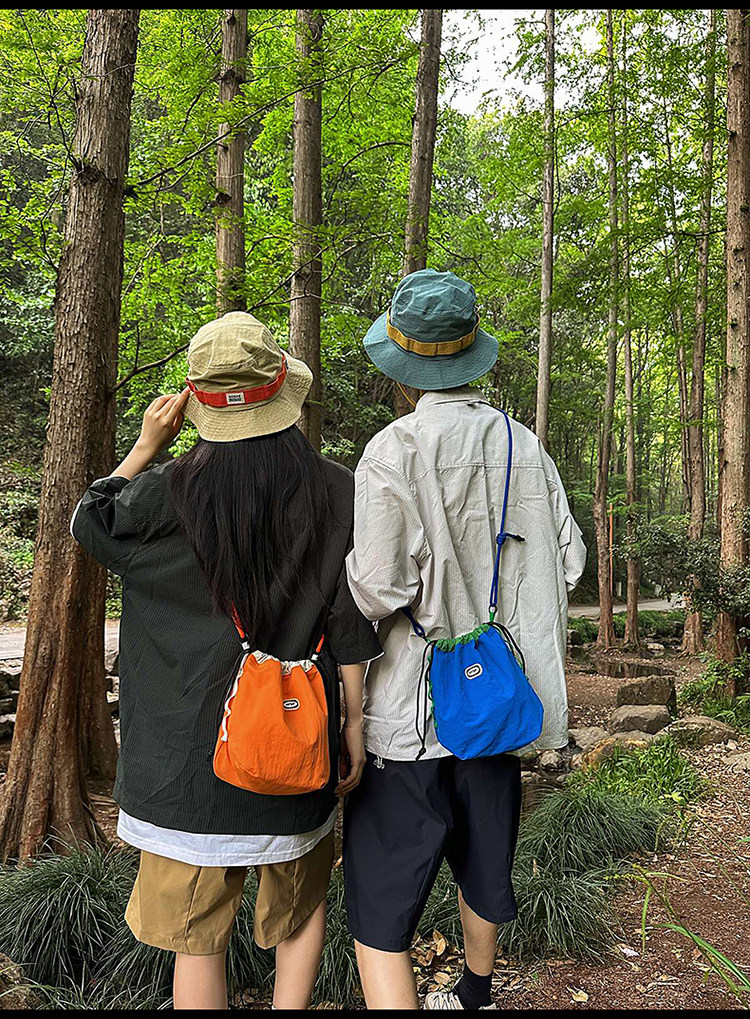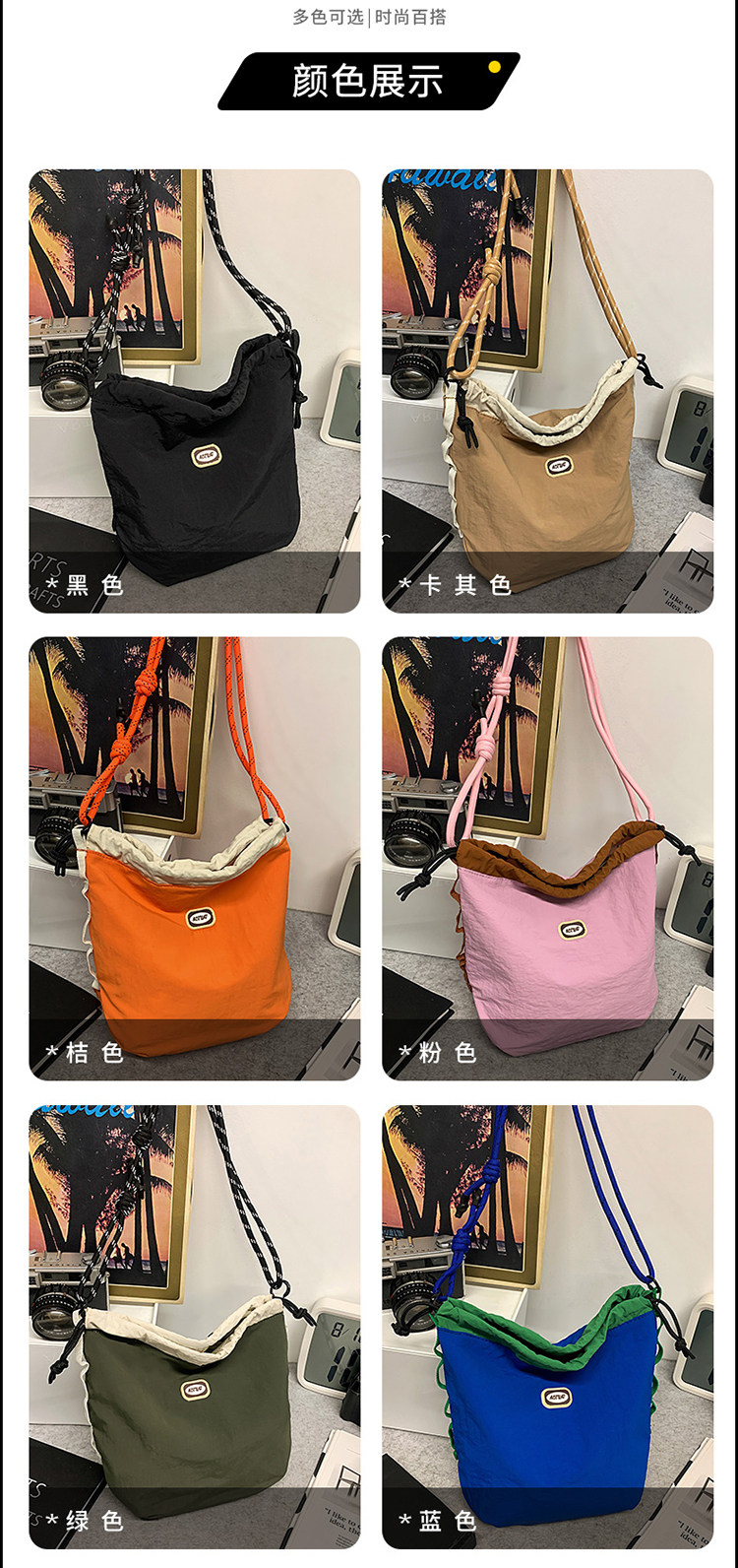 ins潮牌个性斜挎包抽绳束口百搭手机包轻便运动水桶包休闲单肩包