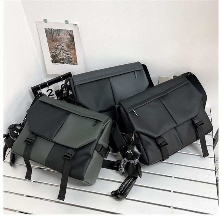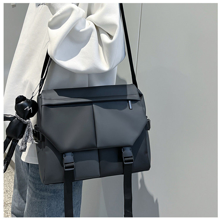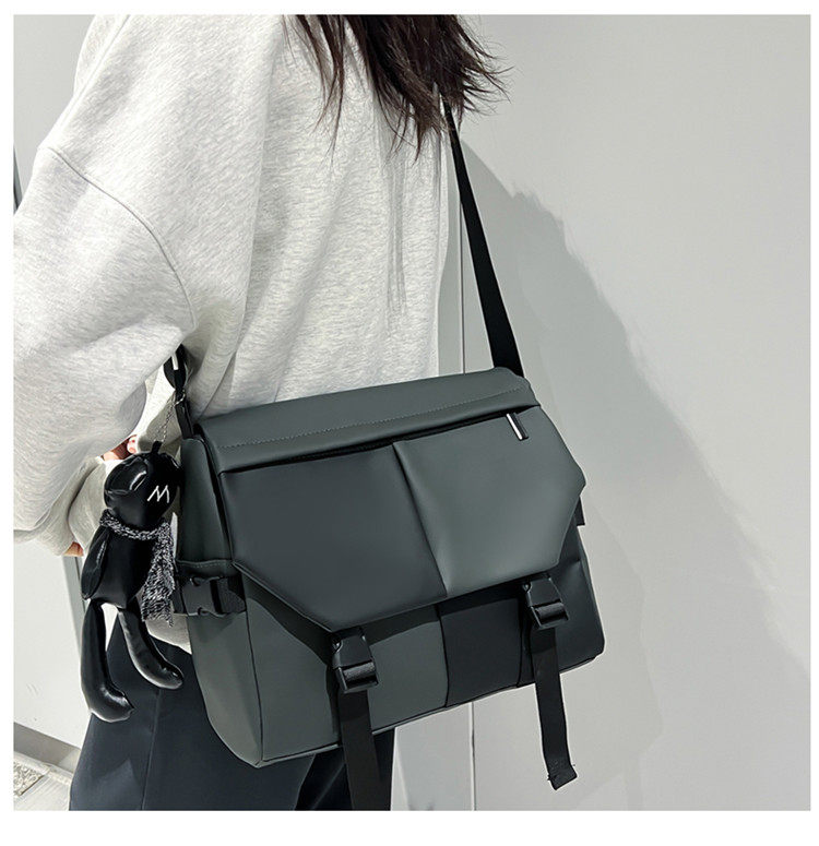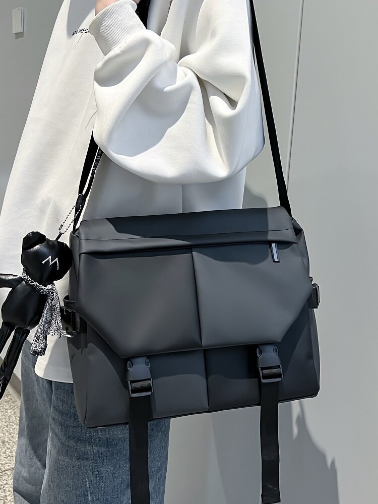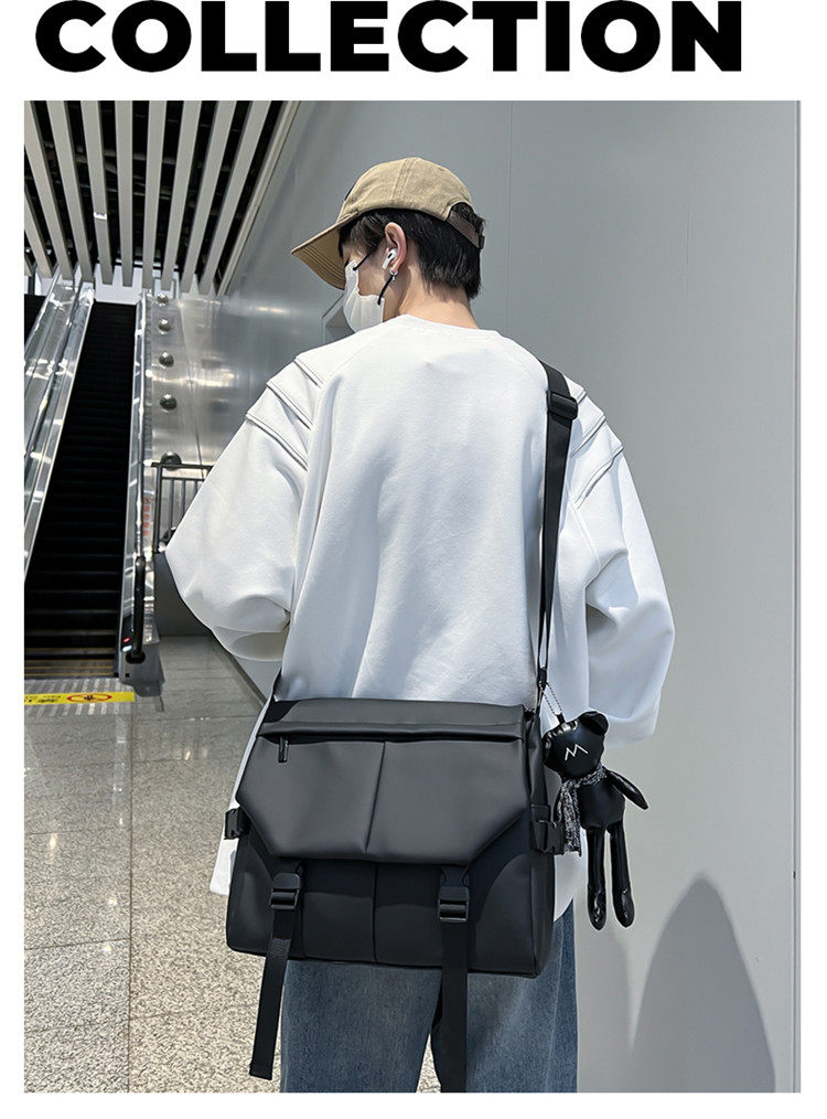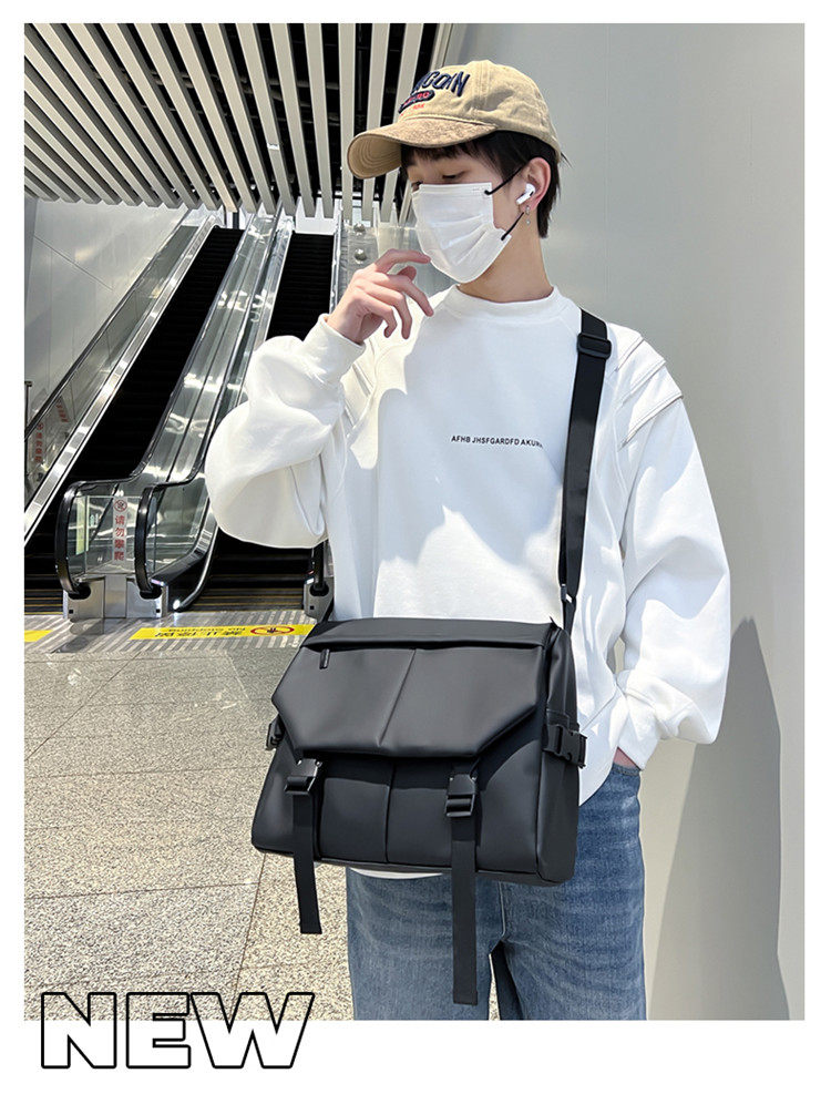 斜挎包男款高级感大容量2024新款皮质防水邮差包男学生单肩包女生