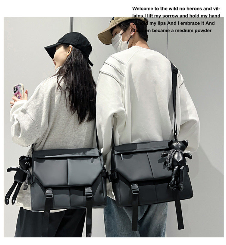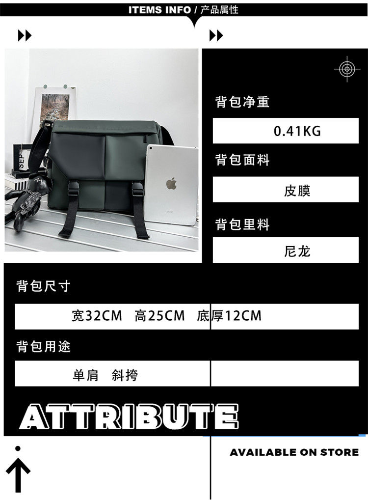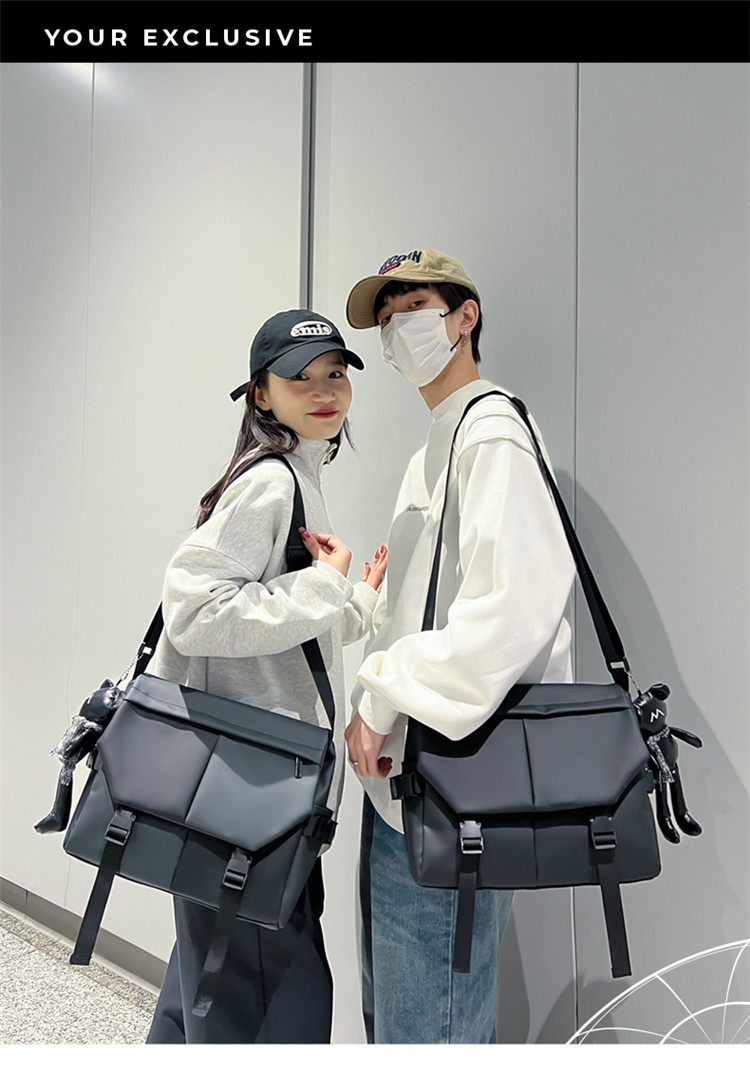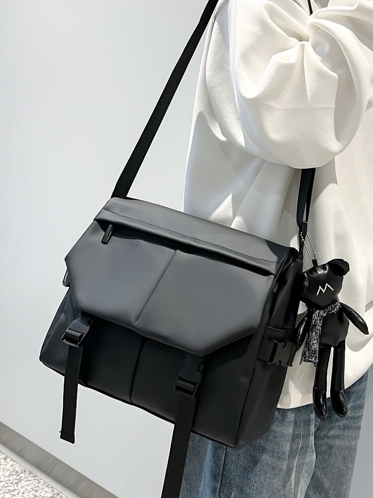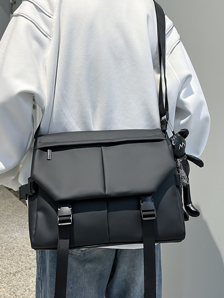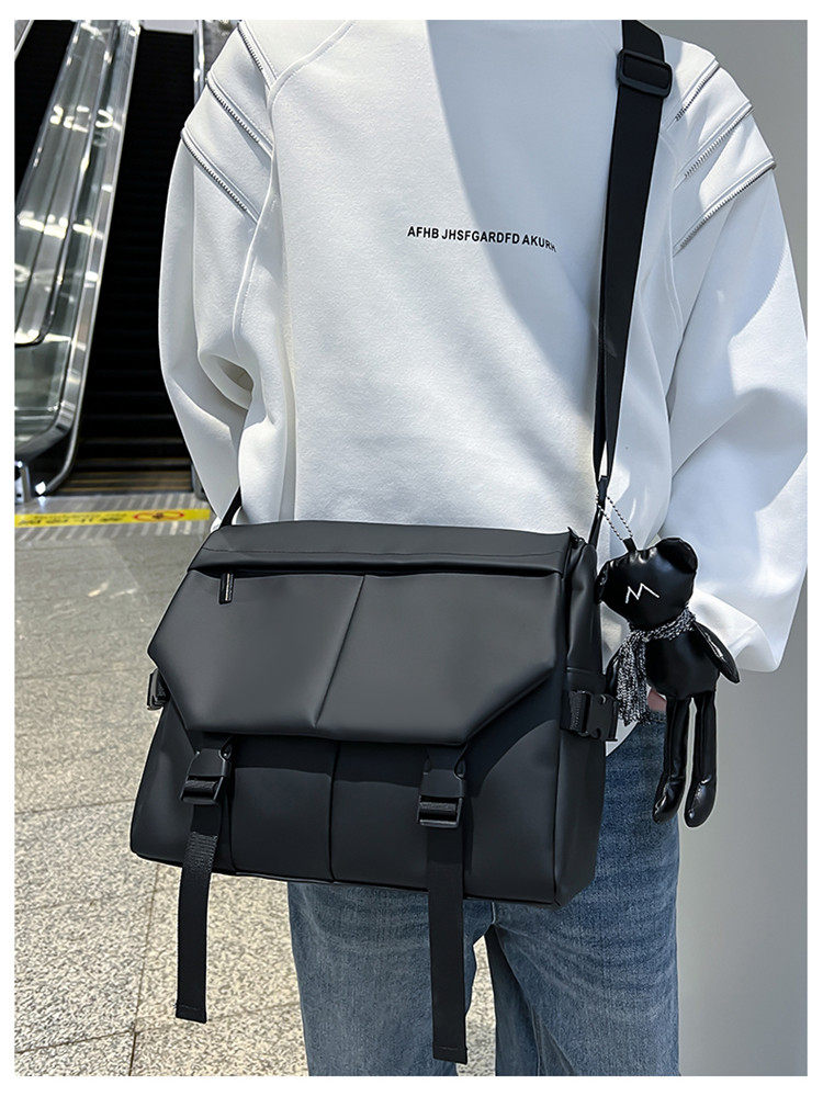 斜挎包男款高级感大容量2024新款皮质防水邮差包男学生单肩包女生