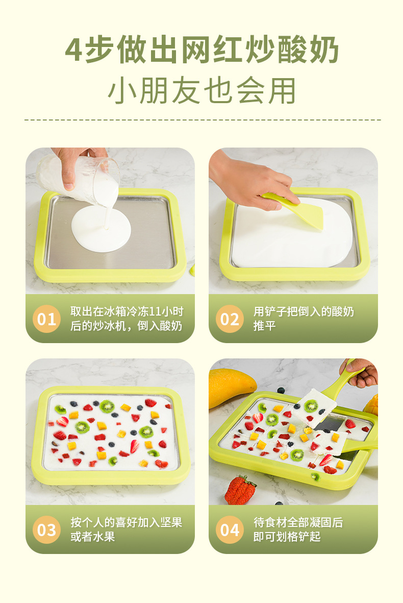 炒冰机家用炒酸奶机不锈钢炒冰盘儿童自制新款炒冰淇淋机跨境礼品