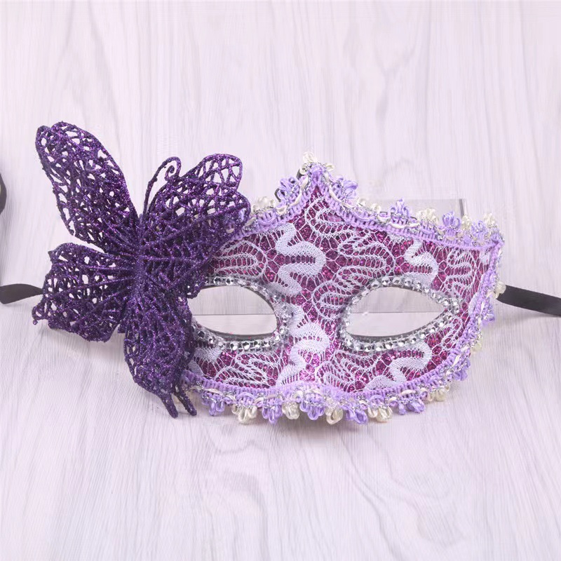 万圣节化妆舞会半脸面具威尼斯公主金粉蝴蝶立体蝴蝶蕾丝装饰批发