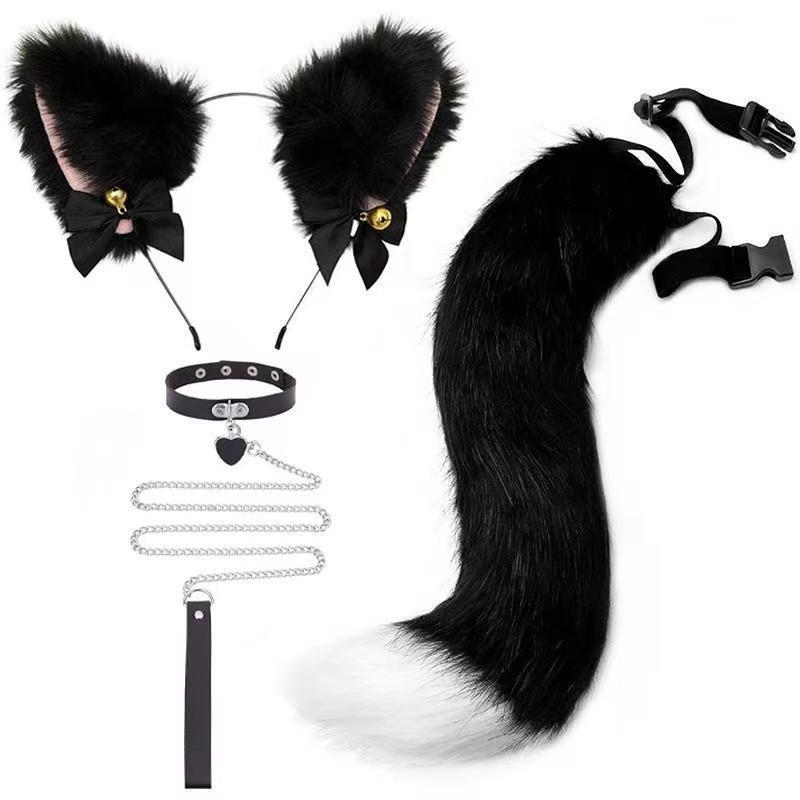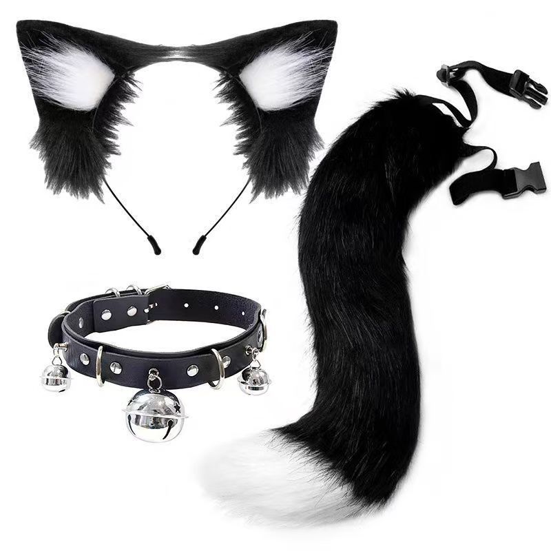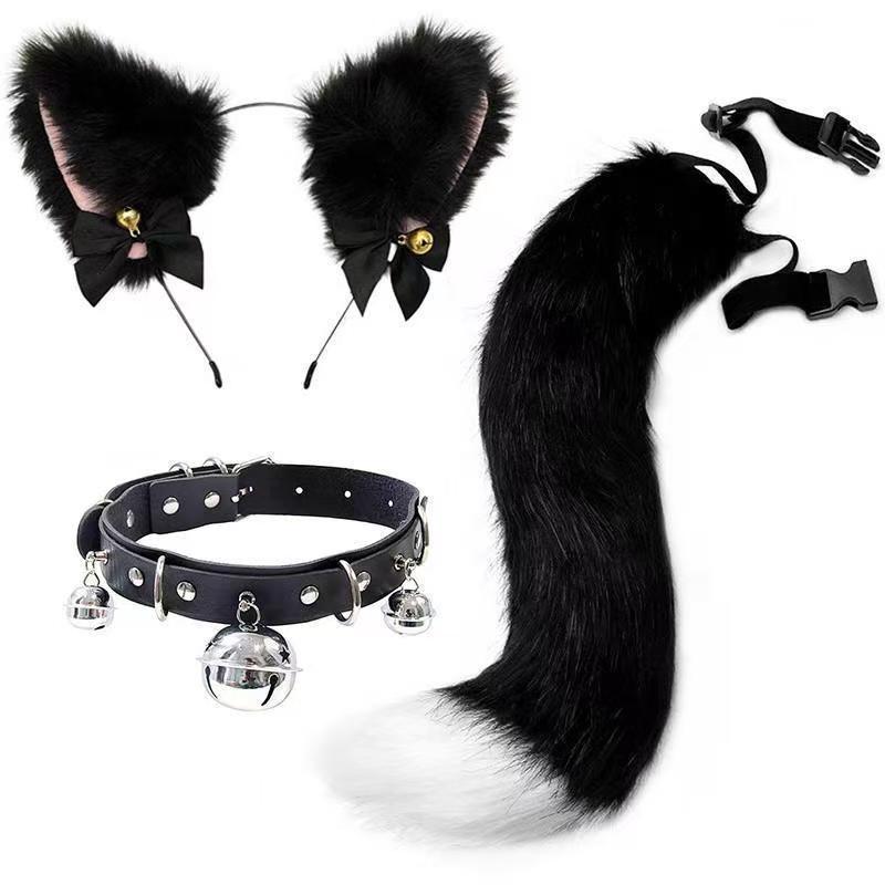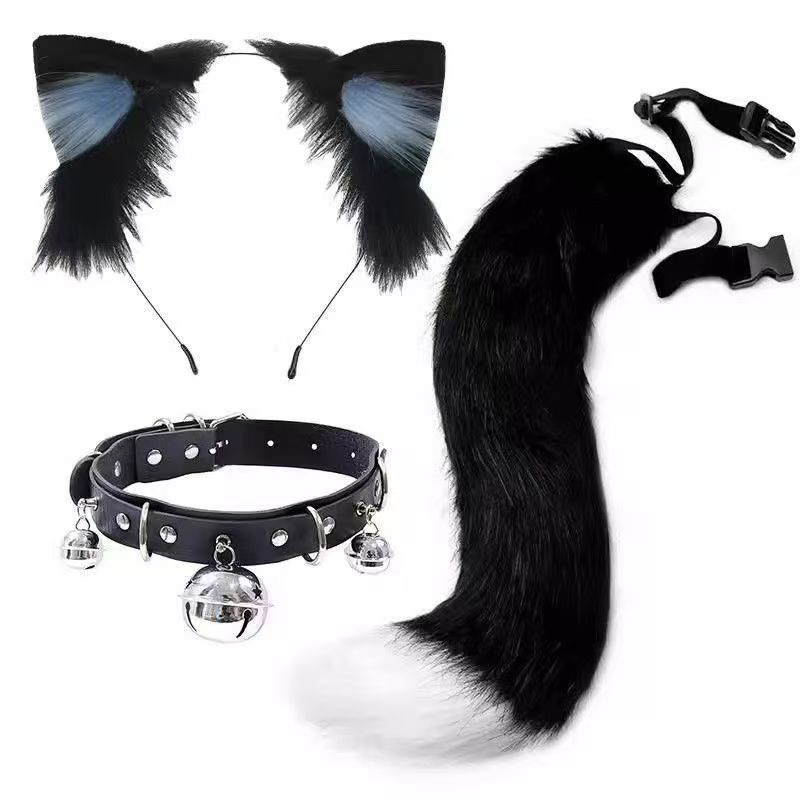 铃铛猫耳朵发箍仿真尾巴可爱铃铛项圈cosplay万圣节装扮套装配饰