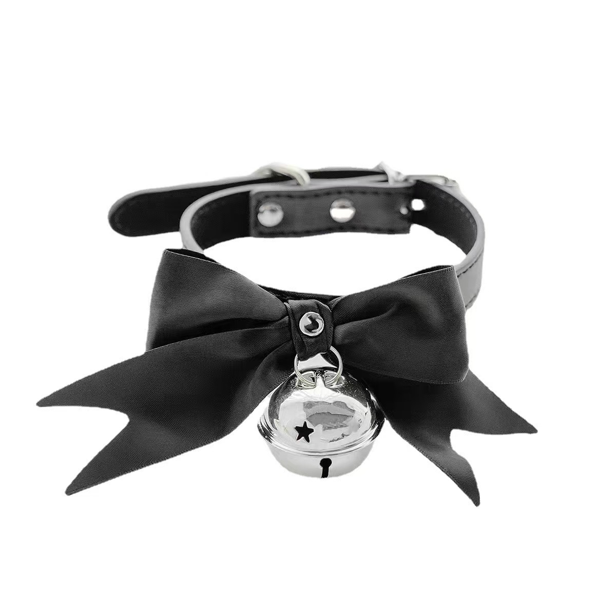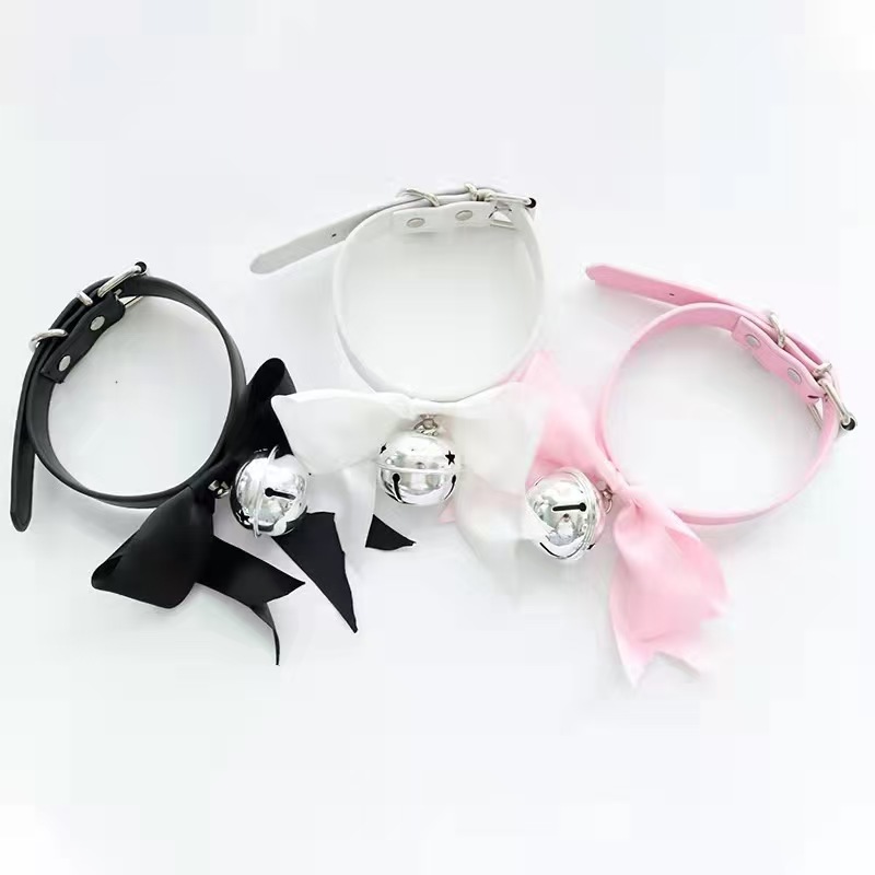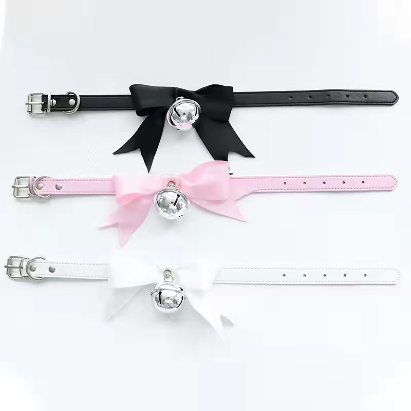 蝴蝶结铃铛项链cosplay可爱女仆性感皮质项圈可调节颈带脖子配饰