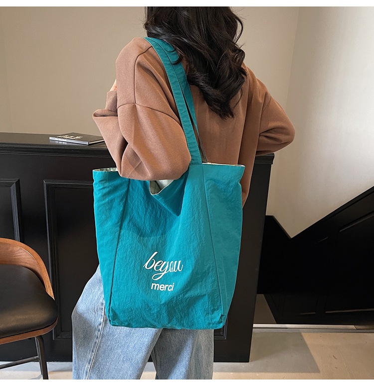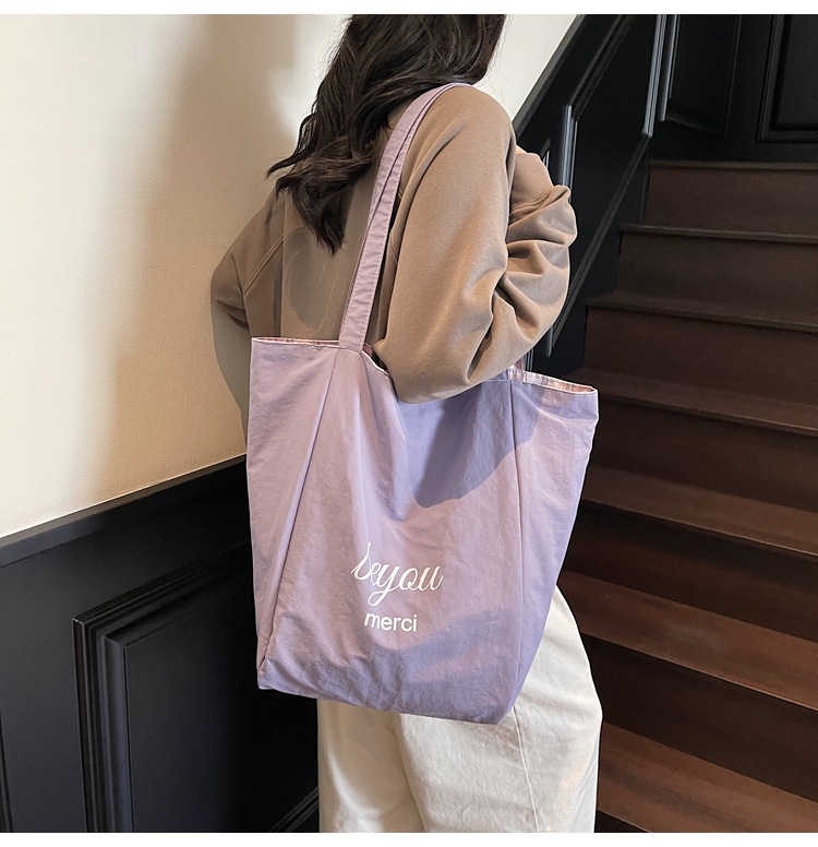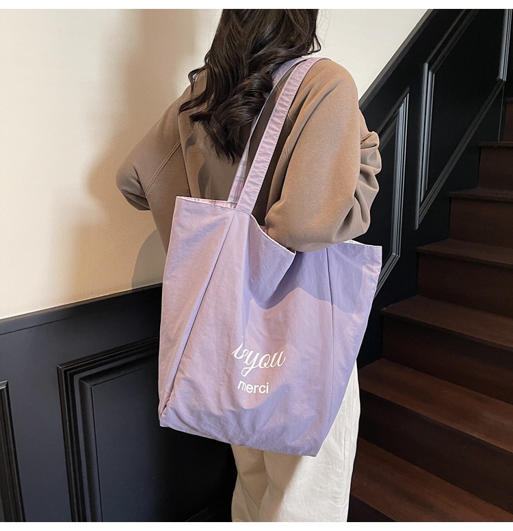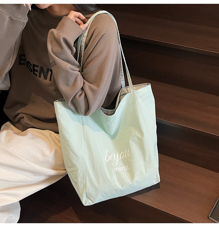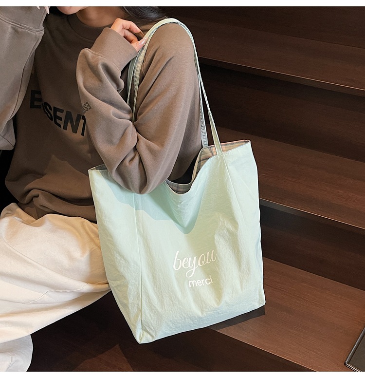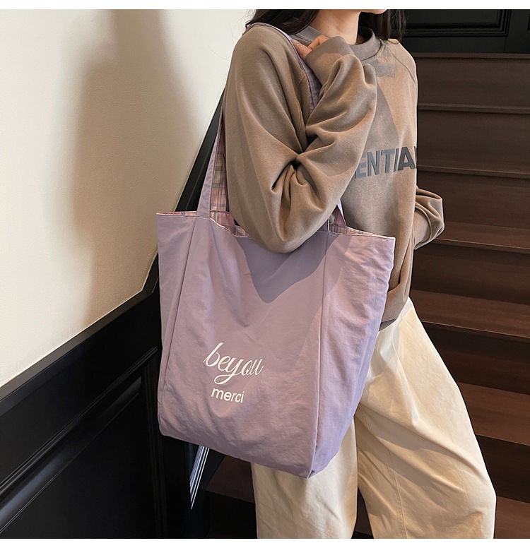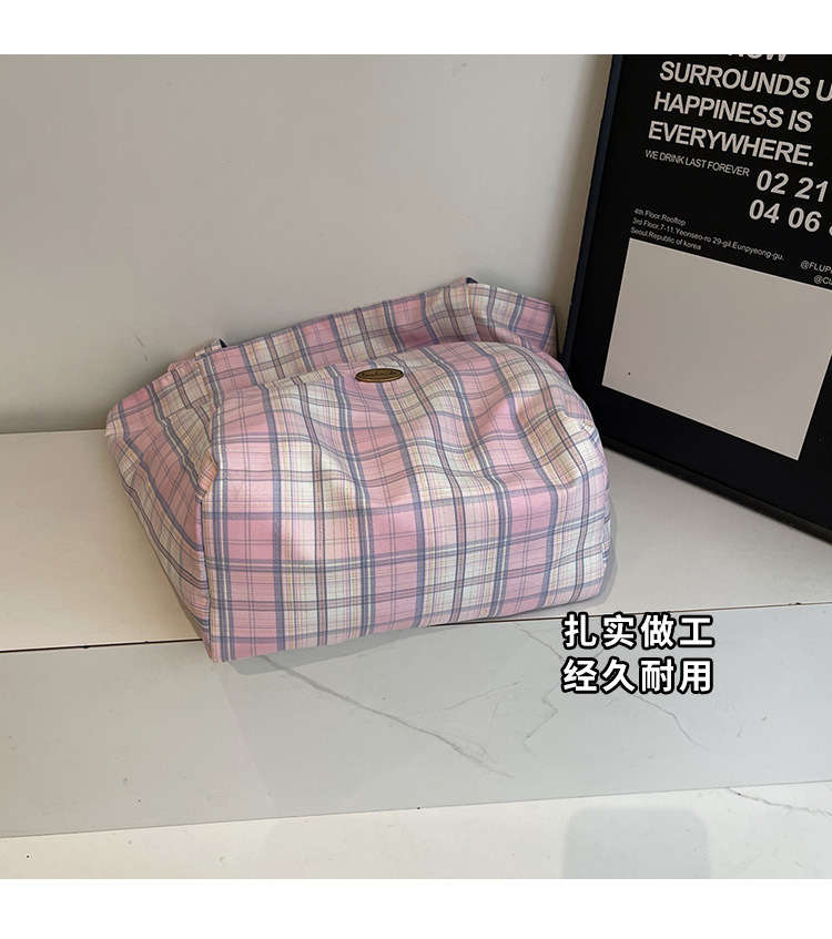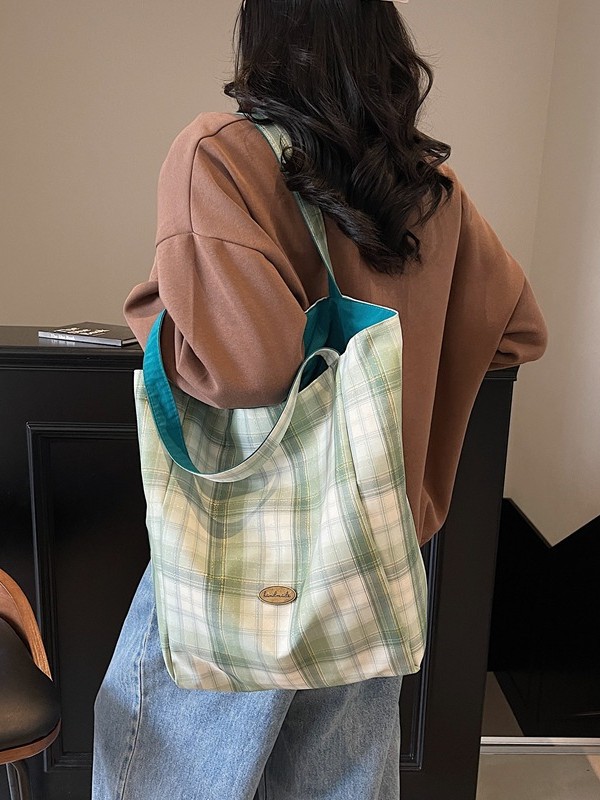 韩版布袋包包女格纹双面手提通勤托特包女士大容量单肩斜挎包
