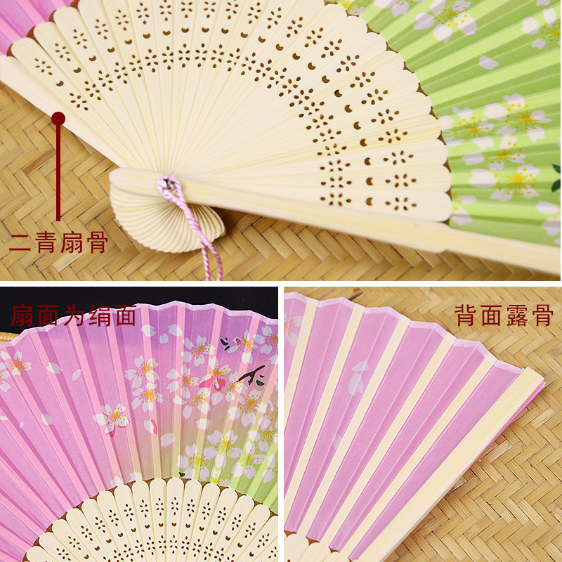 古风日式折扇中国古风中长柄绢布扇工艺礼品二青舞蹈扇子工厂批发