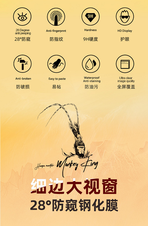 孙悟空防静电防偷窥大弧高铝钢化膜适用苹果iPhone1615141312