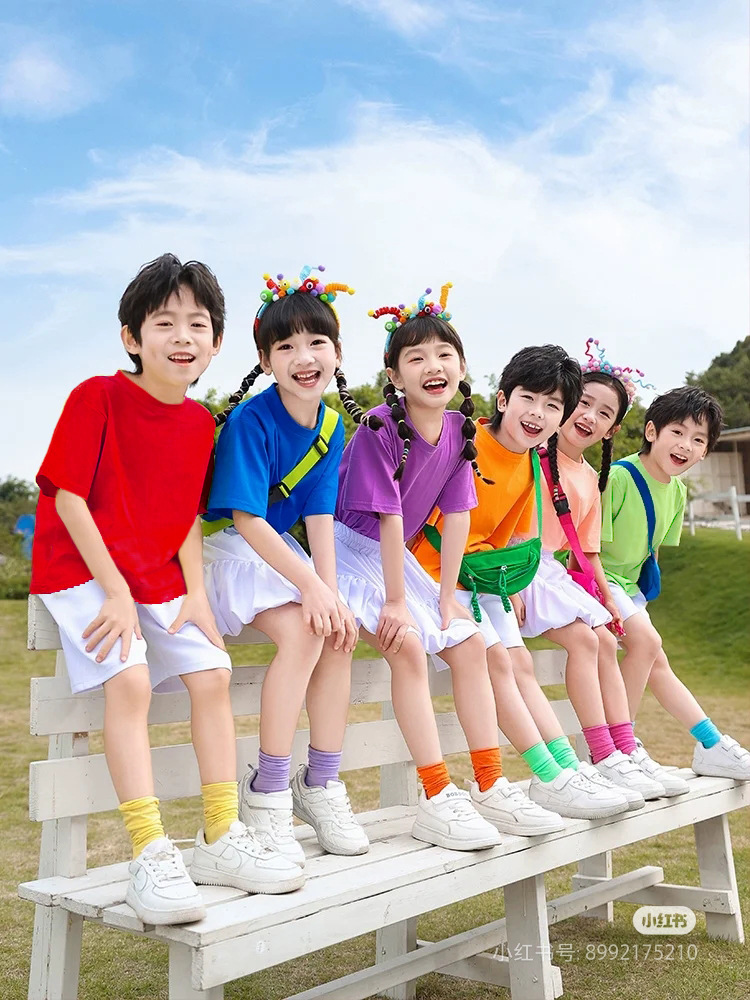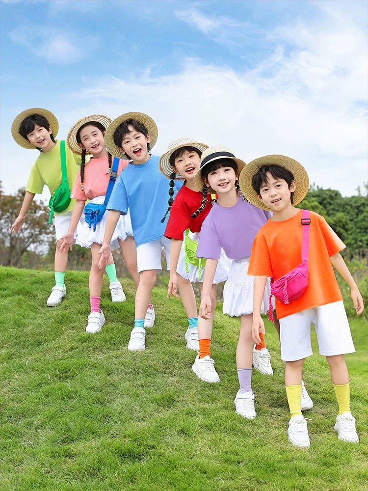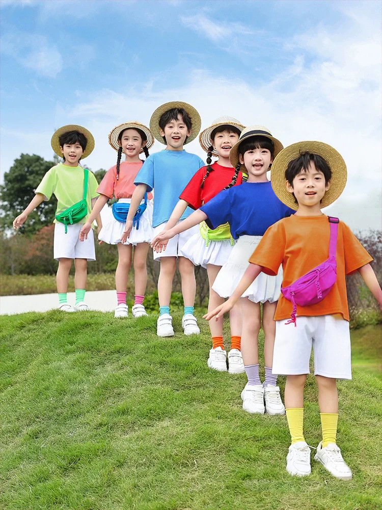 纯棉落肩儿童t恤定制幼儿园毕业六一表演服印图小学生啦啦队班服
