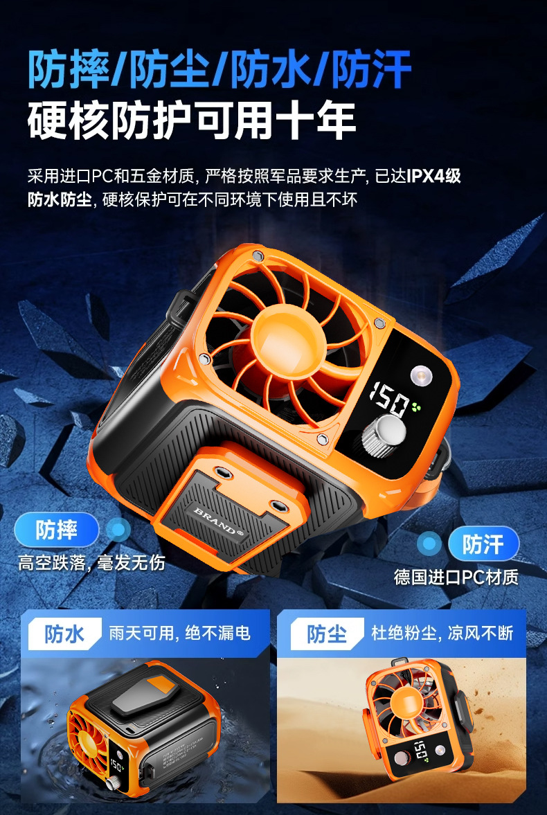 新款户外挂腰风扇露营风扇便携式挂脖强力风扇长续航消暑降温充电