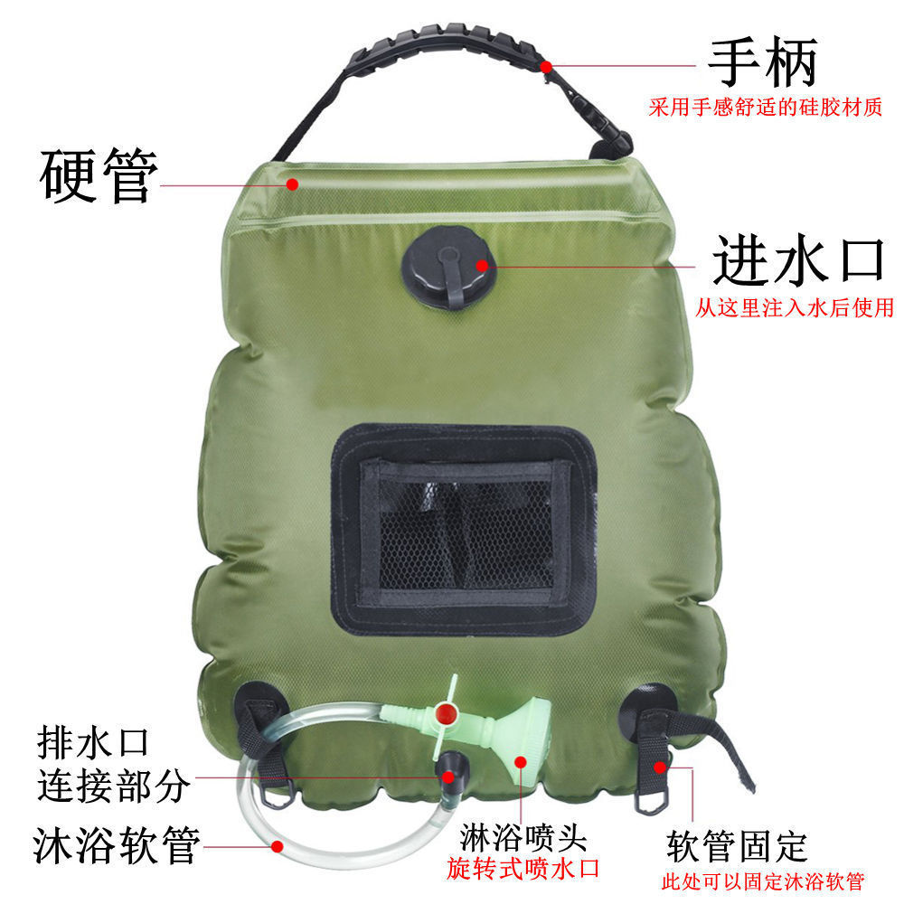 20L户外野营沐浴袋太阳能聚热便携淋浴袋20L野外冲凉洗澡包装水袋