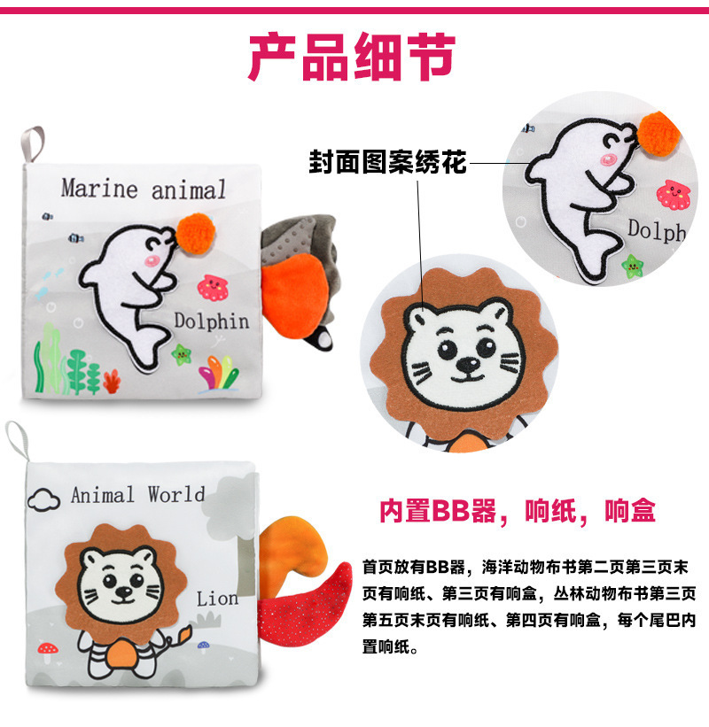 新生婴幼儿布书撕不烂可啃咬认知书宝宝启蒙早教益智响纸玩具