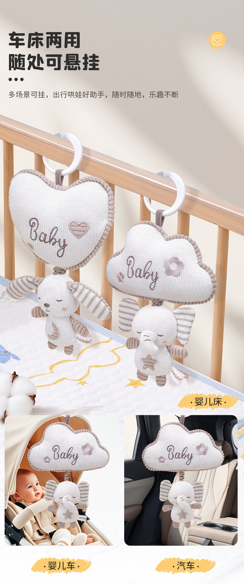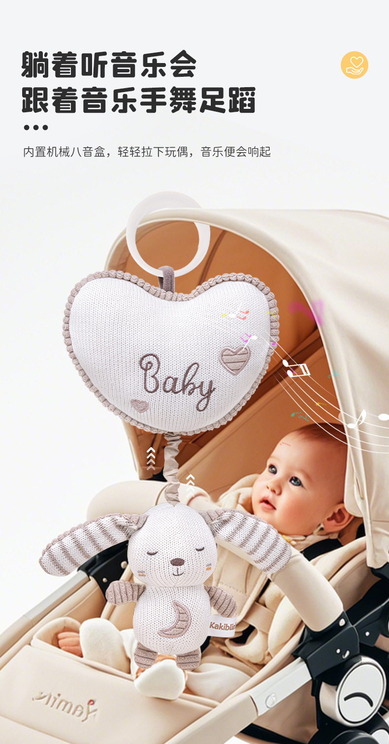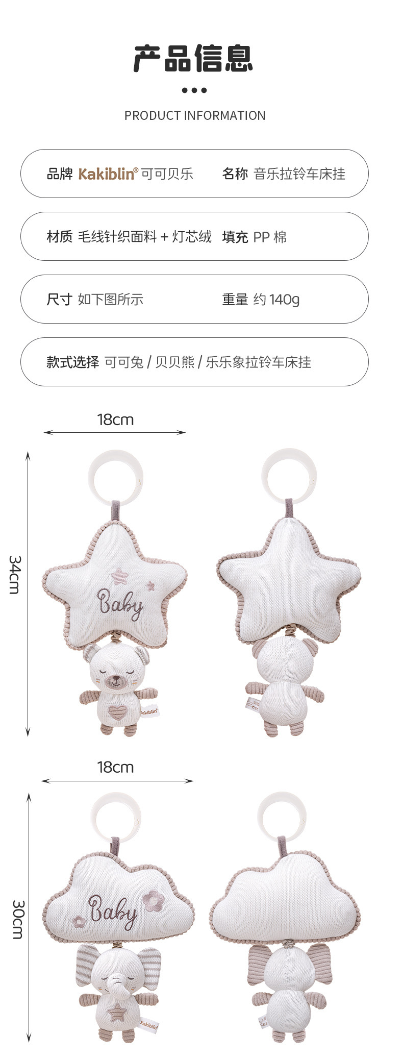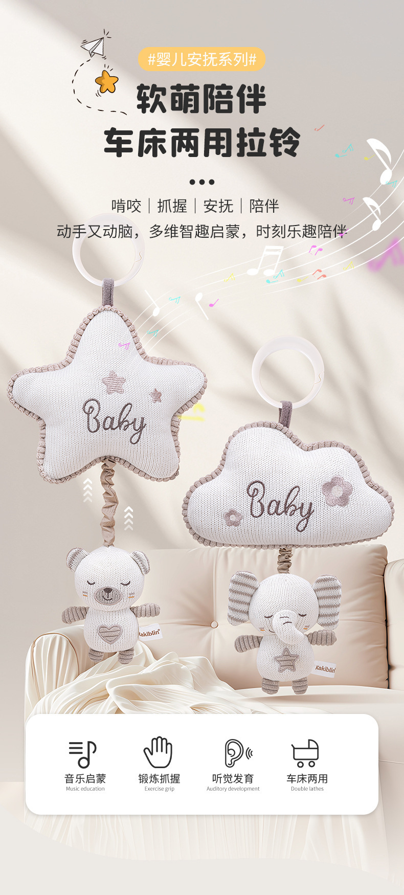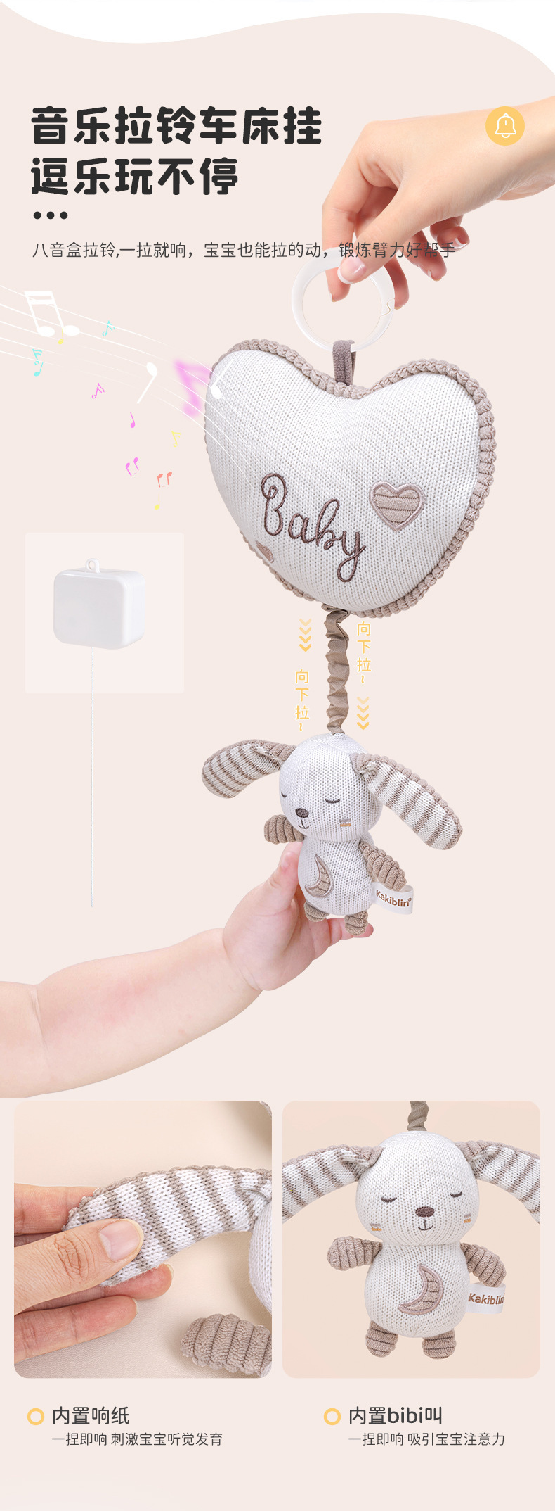 新款毛线针织玩具婴幼儿车挂安抚玩偶宝宝床音乐床挂拉铃0-18个月