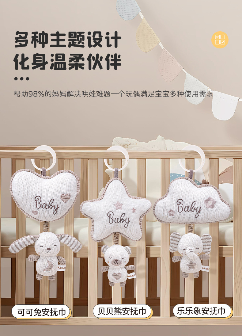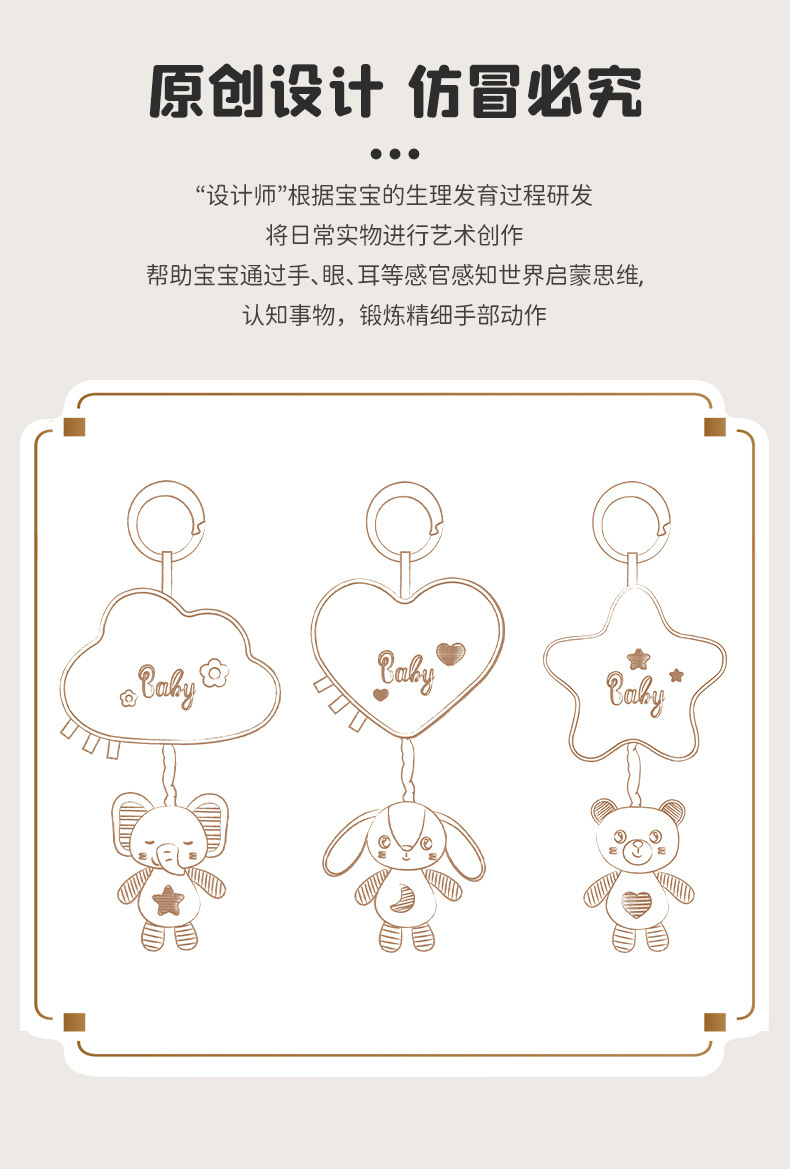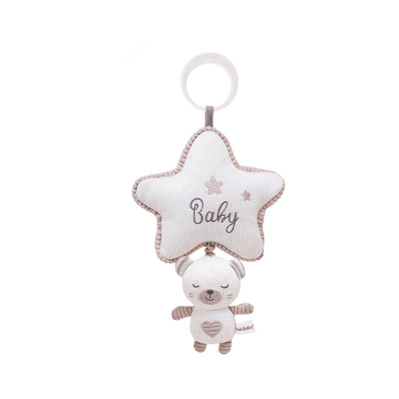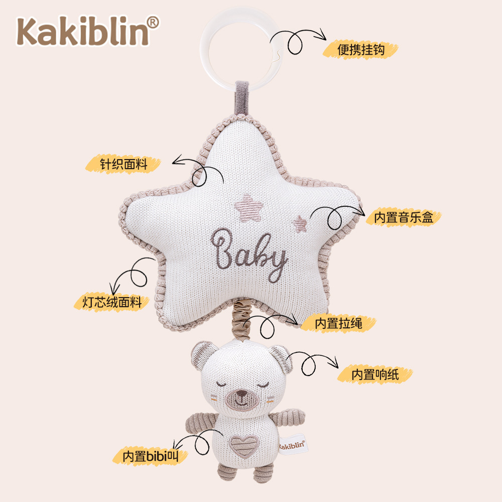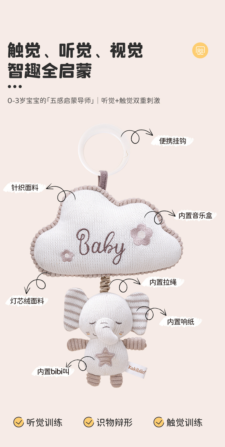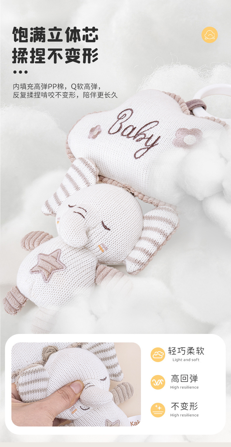 新款毛线针织玩具婴幼儿车挂安抚玩偶宝宝床音乐床挂拉铃0-18个月