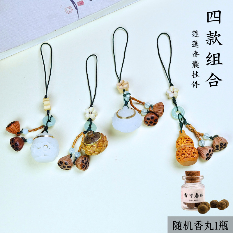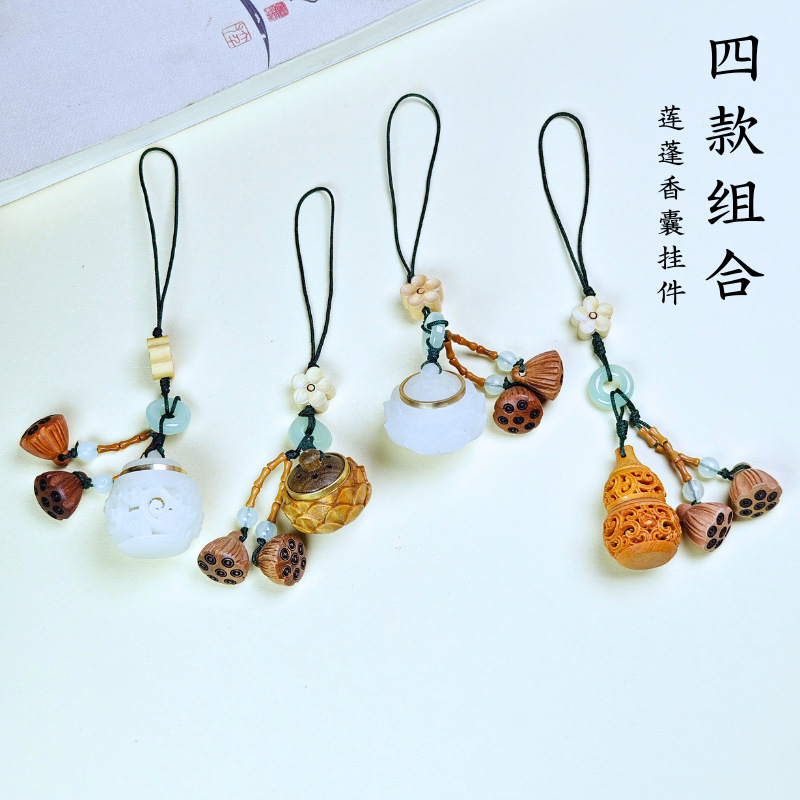 好运莲莲香囊球香丸葫芦香囊挂件手机链香丸球镂空吊坠随身扩香器
