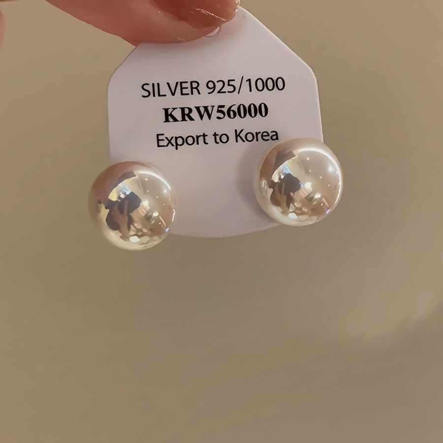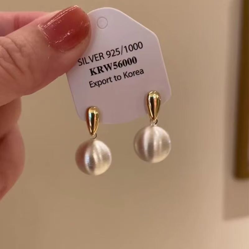 925银针小众磨砂拉丝金属球耳钉冷淡风韩系简约感金色耳饰女