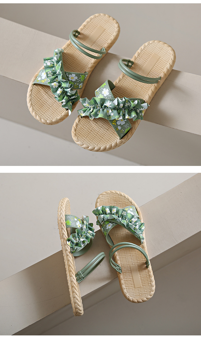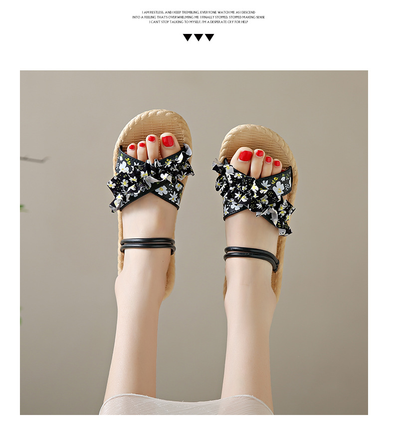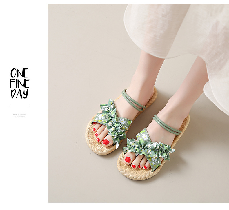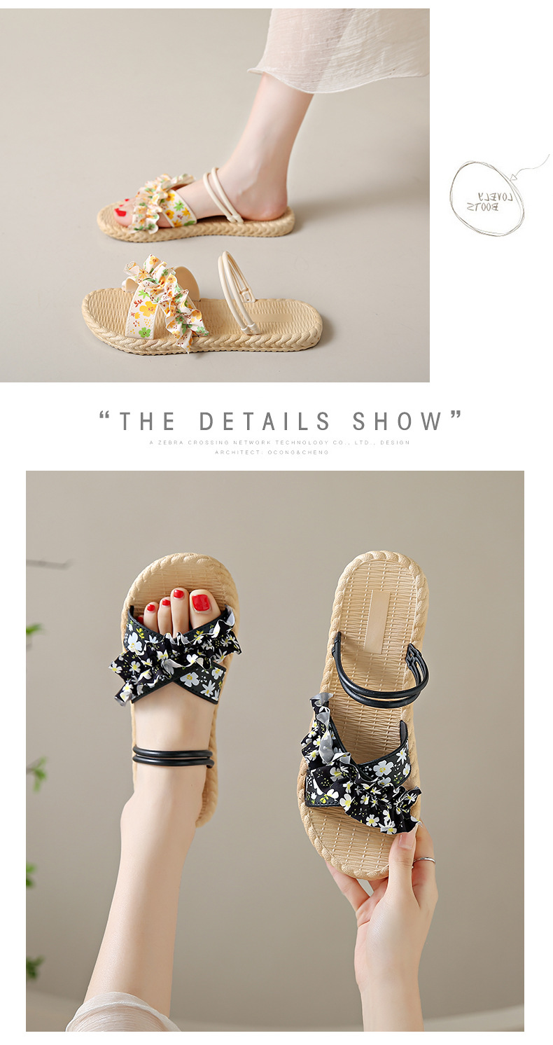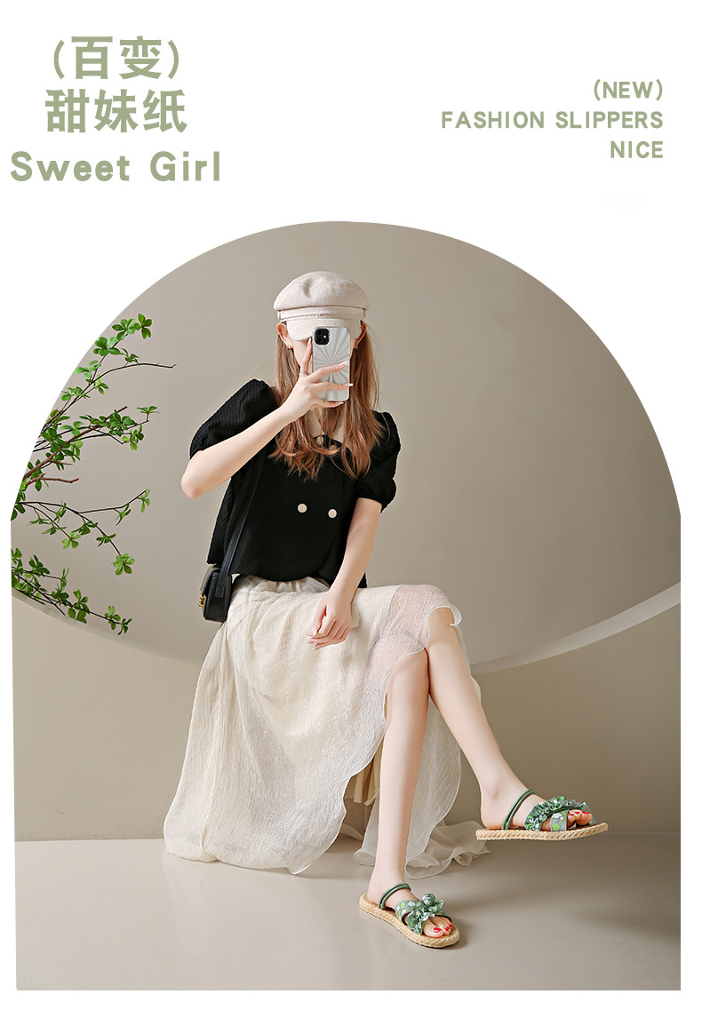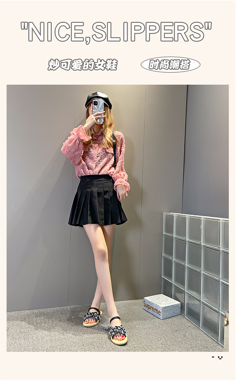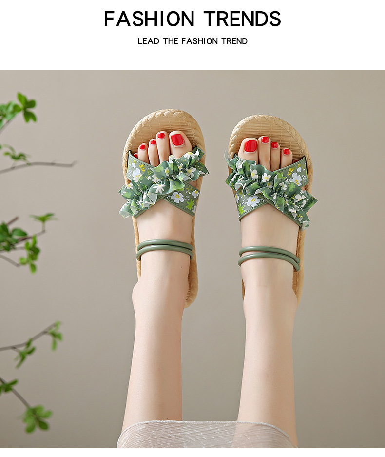 新款碎花拖鞋女夏季外穿百搭女士平底防滑女学生时装凉鞋沙滩鞋子