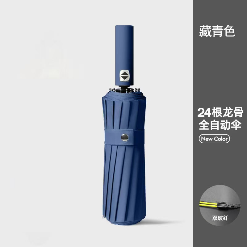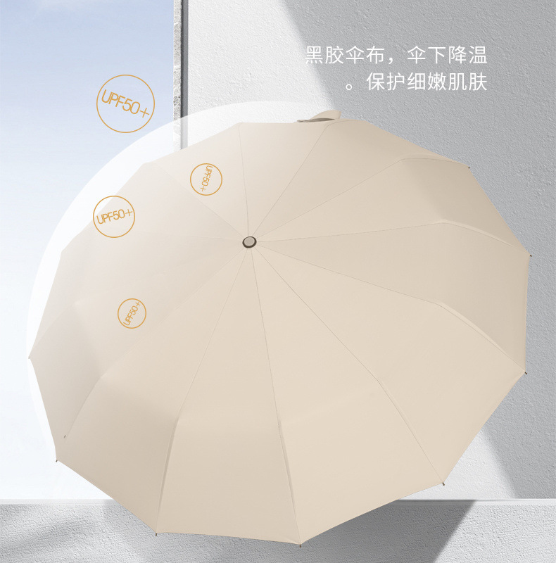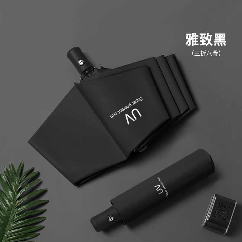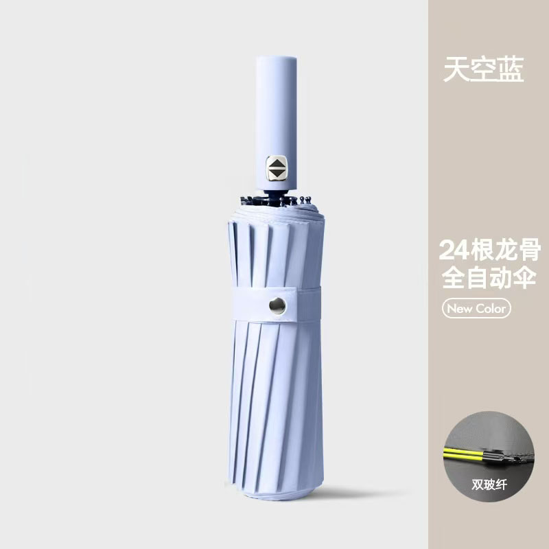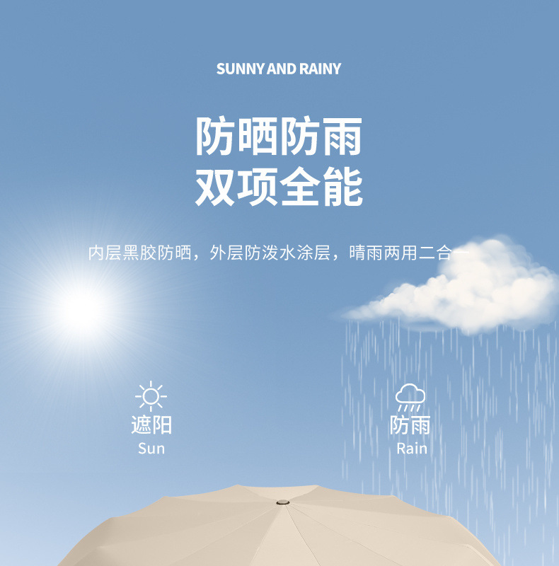 自动雨伞24骨黑胶防晒防紫外线太阳伞折叠高级感双龙骨晴雨伞批发