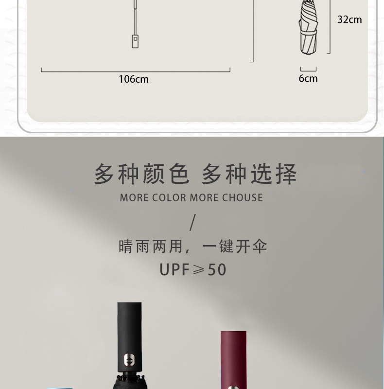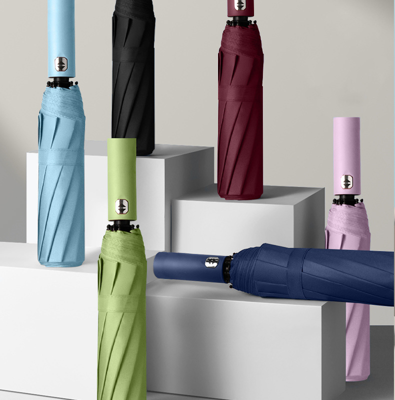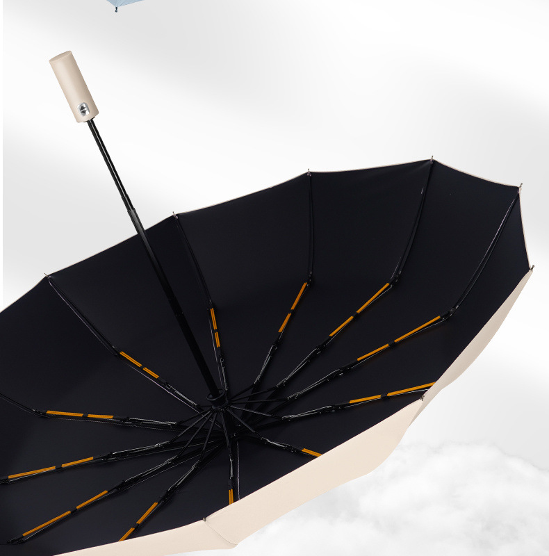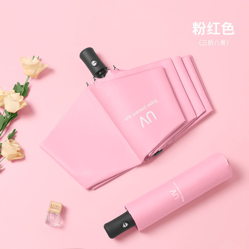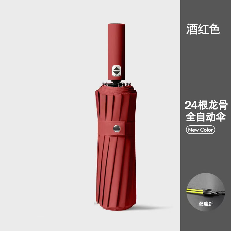 自动雨伞24骨黑胶防晒防紫外线太阳伞折叠高级感双龙骨晴雨伞批发