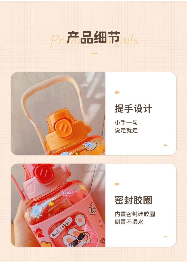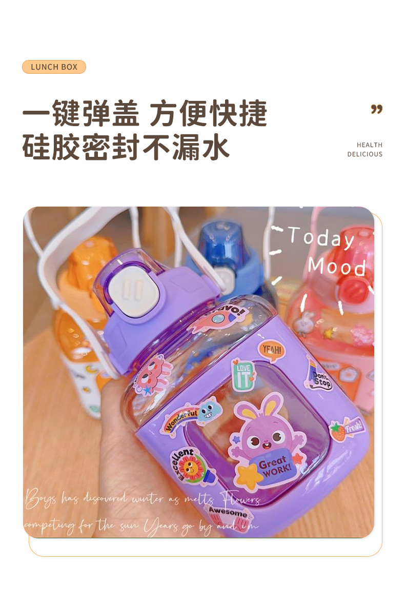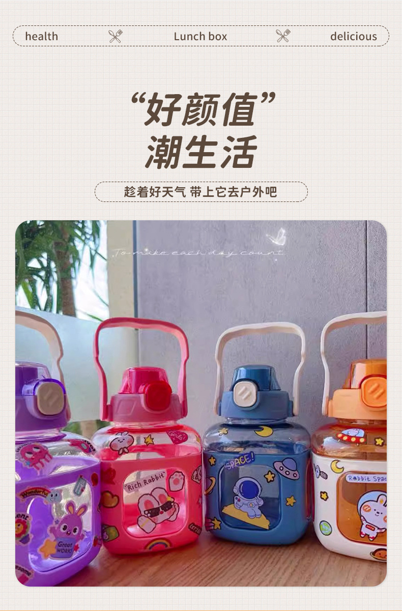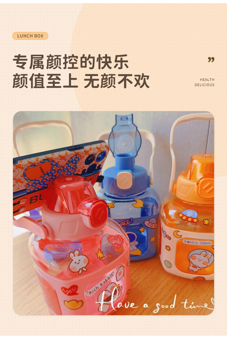 厂家卡通高颜值双饮弹跳大肚杯夏季大容量水杯儿童学生便捷水壶